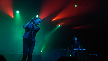 Csont ropogtató ütemek, apokaliptikus electro himnuszok és energikus megjelenés. Az egykori német szén- és acélipari központból, a Ruhr-vidékről származó SITD (Shadows In The Dark) már nevet szerzett magának és egy ideje a nemzetközi klubélet egyik legismertebb elektronikus projektjei között tartják számon. Végre észrevette a hangosító is, hogy valami nem oké, jól lehetett hallani a zenét és a mikrofon is jól be volt állítva. Az énekes picit felöntött a garatra, többször is kereste a színpad egyik-másik sarkában ottfelejtett mikrofonját, egyszer a szintishez ment oda megkérdezni, tudja-e hol hagyta. Az összes “slágert” előadták, a közönség jól fogadta őket, bár valószínűleg nem nagyon értették a frontembert, aki szinte csak németül kommunikált velük.