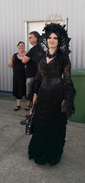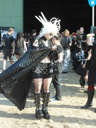 A M’era Luna sokkal többet kínált, mint egy sima zenei fesztivál, egy hatalmas jelmezbál: viktoriánus ruhaköltemények, futurisztikus lakköltözékek, steampunk cosplayerek. Mindkét nap meghitt hangulatú gótikus divatbemutatón ismerhettük meg a legújabb divattrendet: egy fantasztikus utazás a gyönyörű ruhák, szexi fehérneműk, fűzők, lakk és bőr anyagok, illetve katonai felszerelések közt. Az úgynevezett “gótikus divat városban” kereskedők kínálták portékáikat: ékszereket és dísztárgyakat, ruhákat és kiegészítőket, mint például öveket, táskákat, kalapokat vagy éppen színes kontaktlencséket, de nagy siker a vámpír fog is. Újdonság volt idén a faoszlopokból készült MERA LUNA felirat, mindenki rajta csüngött, fotózkodott mellette és nagy látványosság volt a tó közepén elhelyezett halál is. A Hangar-ban a színpad 2 oldalára több színben világító steampunk díszletet építettek fel, ventilátorral a tetején.
