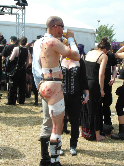 Eközben a nagyszínpadon dupla dobbal felszerelkezve és egy igazán metálosra sikeredett setlistával lépett fel a Combichrist. Akárcsak tavaly az Amphin, idén is csak 1-2 régi számot játszottak, így a fajtiszta electro rajongóknak kicsit csalódás lehetett a koncert. Az együttes a fb oldalukon azon kesergett, hogy 40 perc játékidőt kaptak, azt is kora délutáni időben és sajnos nem ők a főzenekar, mint 2 évvel ezelőtt. Időnként Andy ördögien nézett és gonoszan mosolygott a közönségre, közben nem egyszer felborította a dobokat, szegény crew-oknak nem kevés munkát adva ezzel.