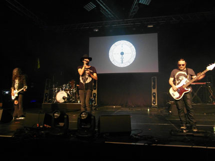 Az osztrák Sado Sato-t ha két szóval kellene bemutatni: szórakoztató EBM. A graziak ezúttal hárman léptek a színpadra. Kétségtelenül az egyik legszínesebb banda az EBM szektorban, néha vicces, olykor együgyű, a lényeg, hogy ne vegyük őket komolyan, ők tényleg azt csinálják, amihez kedvük van. Az “Erdbeeren für alle” közben epres cukorkát osztogattak, a Sturm Cafe “Scheissnormal” feldolgozása alatt körbe-körbe kellett futnia a közönségnek és amikor hirtelen abbamaradt a zene, mindenkinek meg kellett állnia és mozdulatlanul maradnia. Úgy láttam sok rajongónak másnap nem kellett aerobikra vagy edzőterembe mennie, elég jól lefáradtak az alatt a pár perc alatt.