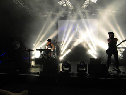 Sven Friedrich és André Feller ismét felrobbantotta a színpadot. Sokszor láttam már az elektro duót, de fesztiválon még sosem szóltak ilyen jól, mindig volt valami probléma a mikrofonnal vagy a hangerősséggel, de most minden tökéletes volt. Rengeteg német Solar Fake rajongó csak miattuk utazott Schwechat-ba, mintha német földön nem adnának elég koncertet. Mint mindig, André volt az első, aki a színpadra ugrott és kitárt karokkal köszöntötte a közönséget. Éljenzés és mosolygós arcok, amint felhanzik a “Not what I wanted”. Nem sokkal később Sven is megérkezett, még nagyobb ujjongás és mosolygás, főleg a gyengébbik nemtől. André csapkodta a szintit, frenetikusan táncolt, ezzel is motiválva a rajongókat, hogy még nagyobb zajt csináljanak, tapsoljanak és táncoljanak. Sven le-fel ugrált, a színpad egyik végéből rohant a másikba és időnként tágra nyitott szemekkel bámult ránk, ezzel még több “mániás” (legújabb albumuk címe: Another Manic Episode) pillanatot szerezve nekünk.