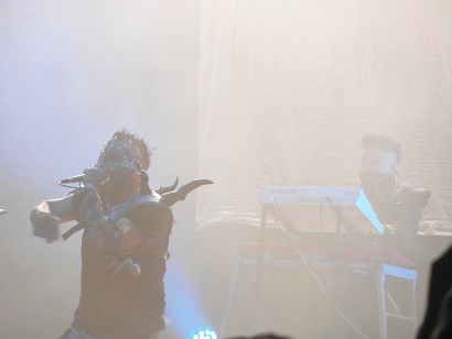 Sietnünk kellett, pár perc múlva kezdődött a nagyteremben az 1993 óta létező Hocico. Őket már senkinek sem kell bemutatni, a mexikói aggrotech duó igen nagy népszerűségnek örvend Németországban is. Szex, hazugság, visszaélés, halál és a vallás határozza meg a szövegeket, a háttérvideók is mindig adják ezt az érzésvilágot. A két halálangyal vadul dobolt a jobb és bal oldalt, Racso a szokásos unott pofát adta, Erk pedig az energikus ördögöt, aki a színpad minden négyzetcentiméterét bejárta a koponyás mikrofonállványával. Az utolsó két számot sajnos már nem tudtam megvárni, rohanás volt vissza a kisterembe, kezdtek a kedvenceim.