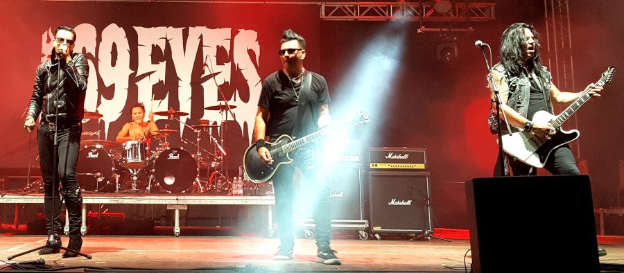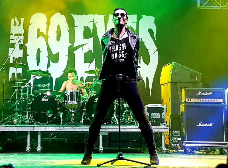 A Rockmaraton zárónapján a Hammerworld Nagyszínpadon az utolsó fellépő a finn gótikus rock egyik legfontosabb bandája, a The 69 Eyes varázsolta el elsősorban a hölgy rajongókat. A 80-as évek végén öt szimpatikus helsinki összeült és megalapították a zenekart. Az elején olyan bandák hatására, mint az Iggy & The Stooges, a Motörhead és a The Doors finoman piszkos sleaze-vel és garázsrock-kal rukkoltak elő. Az évek során az együttes fejlődött, a hangzás egyre sötétebb lett. Repedő gitárok, búgó basszusok, billentyűs részek, táncolható és fülbemászó dallamok, a melankolikus pillanatok megfelelő keveréke, a ringató groove-ok és az énekes Jyrki 69 mély hangja megpörgette a lemezeket.