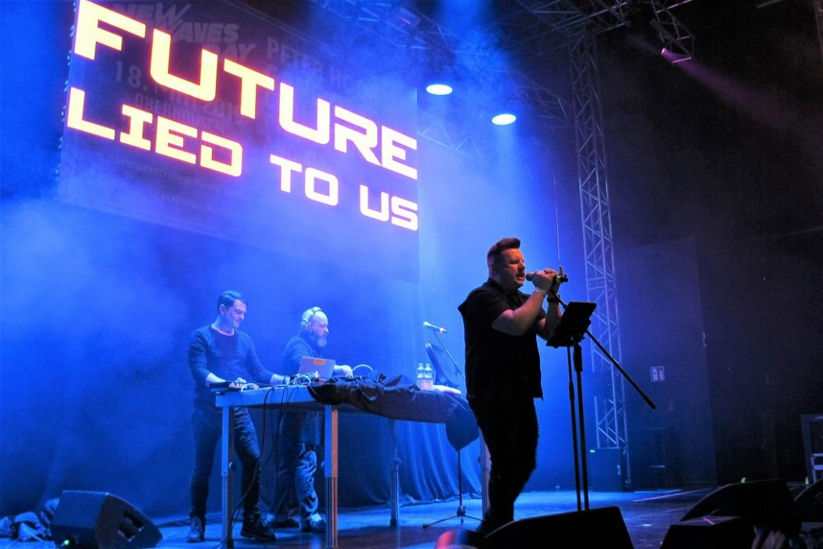 A Future Lied to Us olyan jövőt vetített elénk a kisebb színpadra, ami soha nem volt. Ezt a jövőt három tehetséges zenei agytröszt ígérte Vasi (Namnambulu, Frozen Plasma, Reaper), Tom (SITD) és Krischan (Rotersand), amikor arról álmodoztak, hogy zenészek lesznek. Reménykedtek és hittek egy soha nem létező jövőben, majd szenvedélyükből született meg ez a formáció. Kapu a töretlen optimizmusukhoz, remény a múlt és a jövő közti rövid pillanathoz. Csillogóan fenyegető, csábítóan elnyomó. A „Tellurian” és a „Lost” nagyon jól visszaadta a 80-as évekbeli hangzást. „Intentions and mask” nagyszerű dallam, Tom tökéletes énekével, engem zeneileg kicsit a Frozen Plasma-ra emlékeztetett, míg a „Blaze in the dark” eleje inkább a SITD-re hajazott, nyilván nem véletlenül. Ahogy láttam mindenkinek felüdülés volt ezt a frissen alakult együttest hallgatnia.