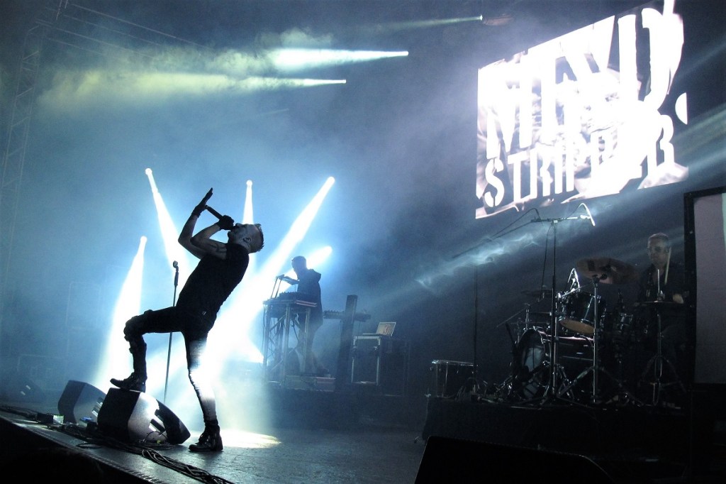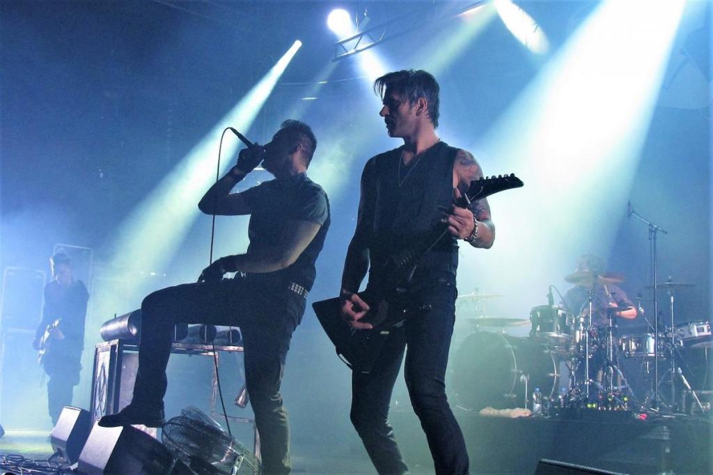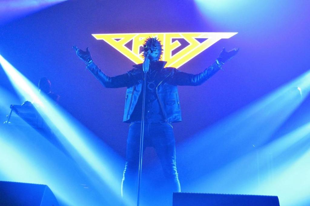 Utánuk következett a Priest, azaz a svéd maszkos férfiak, akik 2017-ben adták ki debütáló „New Flesh” albumukat, berobbanva ezzel a szcénába. A divatos és nagyon modern elektro-t kombinálták a sötét megjelenéssel. A zenekar többször járt már hazánkban is, nagy sikert aratva. Alighogy megjelent március 1-jén az új „Obey” videó, jött a hír, hogy az énekes és az egyik szintis kilépett a bandából. Mindenki találgatta, ki lesz az új dalnok, hogyan fognak szólni azok a hangok egy friss torokból és vajon újra felveszik vagy kiadják a régi énekes hangjával a hónap végén megjelenő kislemezt? A tagok motoros stílusú fekete bőrkabátban voltak beöltözve, hozzá fehér inget és fekete nyakkendőt viseltek, pestismaszkkal a fejükön. A fekete rúzzsal kikent énekes pedig szegecses bőrmaszkot hordott a papi fehér gallérjához, kicsit emlékeztetett Pinhead-re a Hellraiser-ből. A híres Supremacy című C64-es játékzene intró után máris jött a „The pit” és a „Nightmare hotel”, ahol még picit lehetett érzékelni az új Mercury izgulását, ami nyilván nem meglepő. Legjobb esetben is maximum 1,5 hete volt arra, hogy átvegye a régi tag színpadi mozgását, ami azért sem volt túl egyszerű, mert Tom nagyon jó táncos és képzett operaénekes volt. Az újonnan szerveződött banda összecsiszolódására sem volt túl sok idejük, a nagyszínpad is nehezítette szerintem a helyzetét, sokszor gondolkoznia kellett, hogy mit csináljon és merre menjen. A dalokkal és a szövegekkel azért lehetett egyszerűbb dolga, mert kiderült, hogy nem más, mint az alapító Salt állt oda a mikrofon mögé, kilépve a biztonságot jelentő szintije mögül. Összességében nagyon jól megoldotta, az „Obey” és a „Vaudeville” alatt a hangja is félelmetesen megközelítette a régi énekesét. Nem olvasta a szöveget, egyszer sem hibázott, hacsak nem annyiban, hogy a „The cross” közben a színpad szélére jött ki táncolni és hergelni a közönséget, de nem ért vissza időben a mikrofonjához és már ment a kórus, az első 1-2 szó így nála kimaradt. Én személy szerint nagyon hiányoltam a „Call my name”-t, de volt „History in black”, „Private eye”, ,,Populist” és egy új szám is, a „Neuromancer”. Az egyik új szintisen is látszódott az izgatottság, a tartása egyáltalán nem volt laza, kevesebbet is mozgott és nézett fel a közönségre, mint a régi Sulphur. A másik szintis élvezte a színpadi létet, egyesek szerint ő volt a producer, ugyanis a koncert végén ő terelgette a többieket a meghajláskor és látszott is rajta, hogy mennyire örül, valószínűleg meg is könnyebbülhetett, hogy jól sikerült a produkció, a rajongóknak is jelezte, hogy köszön mindent. Mi pedig papi áldással indulhattunk neki az estének.