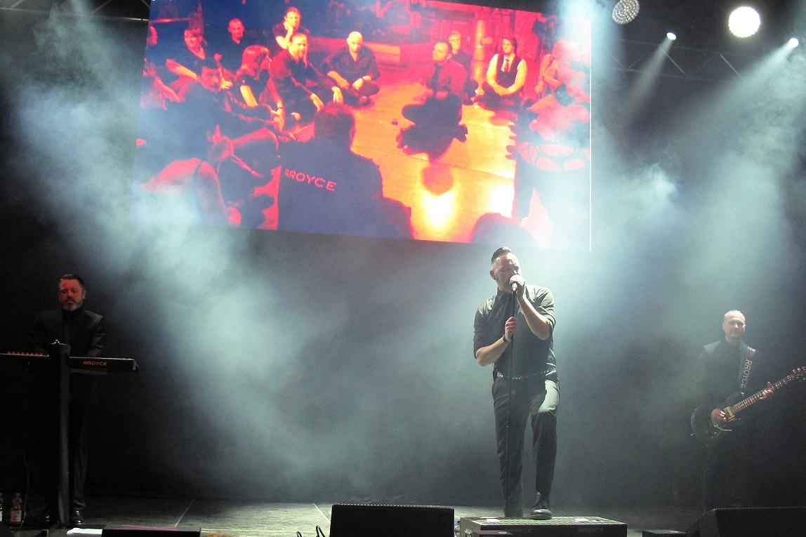 A kisszínpadon fellépő 2013-ban alakult dortmundi trió olyan díjakat gyűjtött már be, mint a legjobb wave-gothic együttes első és a legjobb elektropop banda második helyezettje, valamint a Sonic Seducer magazin által meghirdetett „zenekari csatában” az olvasók a harmadik legkedveltebb együttessé választották be a Rroyce-t. Így már nem is csoda, hogy miért voltunk annyira sokan a koncerten, rengeteg rajongót láttam a zenekar pólójában is. A 80-as évek szelleme végig érződött a számokban („Who needs”, „The principle of grace”, „I like it when you lie”, „Pyroclastic flow”), kellemes, hogy a mai modern időkben sem hagyták veszni a wave/elektro/szintipop-ot. Mindenki táncolt és élvezte az időutazást.