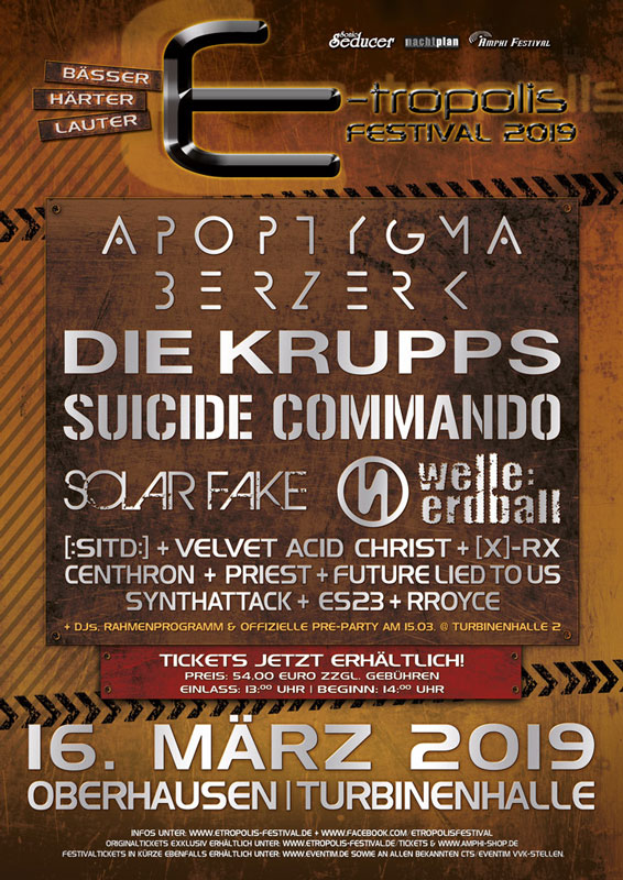 Az ebben az évben is teltházas E-tropolis-t több, mint 4.000 látogató tisztelte meg. Természetesen a nagy részük német volt, de találkoztunk angolokkal, lengyelekkel, oroszokkal és egy félig német félig magyar csajszival is. Jó volt látni, hogy itt virágzik ez a szcéna és az idősebb korosztály is elmegy a bulikba. A szervezés jó volt, a beengedés is simán lezajlott, a két színpadon próbálták megoldani a minél kevesebb átfedést és igyekeztek tartani az előírt kezdéseket is. Egyetlen hiba az volt, hogy az előpartinál és az afterpartinál sem volt étkezési lehetőség biztosítva, csak a koncertek idején voltak nyitva a kajás bódék és a különféle portékát áruló standok. A nap folyamán már hirdették a következő évi fesztivál félig elkészült felhozatalát, ami már most igencsak kecsegtető.