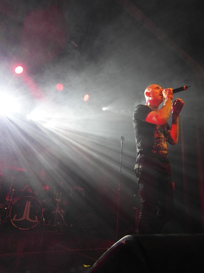 A hamburgi, kezdetben még gothic-rock bandaként működő Girls Under Glass-t manapság már nehéz stílusilag beazonosítani, mert zeneileg használták a darkwave, pop és indusztriál elemeket is. Az énekes elég látványosan szenvedett a színpadon és többször is megélte halálának pillanatát. Nekem a nap kakukktojása volt, valahogy nem illett a többi együttes közé, nem is igazán tapsolták vissza őket.