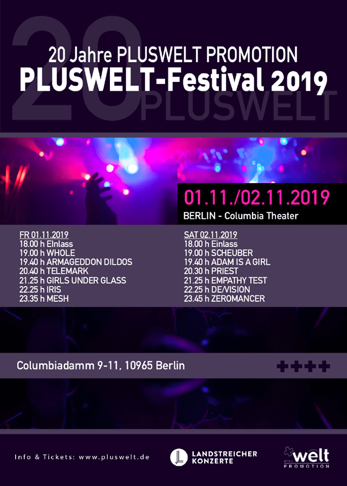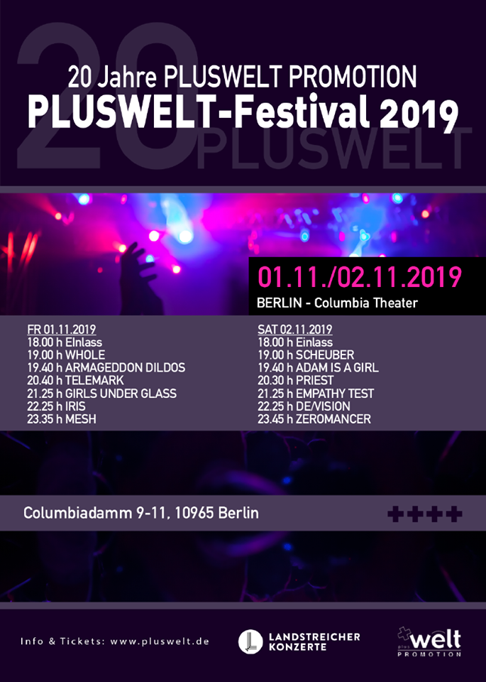 Húsz év telt el azóta, hogy a hamburgi koncertszervező iroda meglátta a napvilágot. Ennek méltó megünneplésére dobtak össze egy jó kis banzájt. A berlini két napos Pluswelt fesztivál helyszíne, a Columbia Theater jó választásnak bizonyult, metróközelben volt, méretügyileg is eltalálták a látogatók számát. Kényelmesen elfértünk, nem tapostuk egymást agyon, de nem is volt az az érzése az embernek, hogy csak lézengtünk benne. Mivel az épület régen moziként funkcionált, az emelkedőkkel szuper rálátás volt a színpadra is.