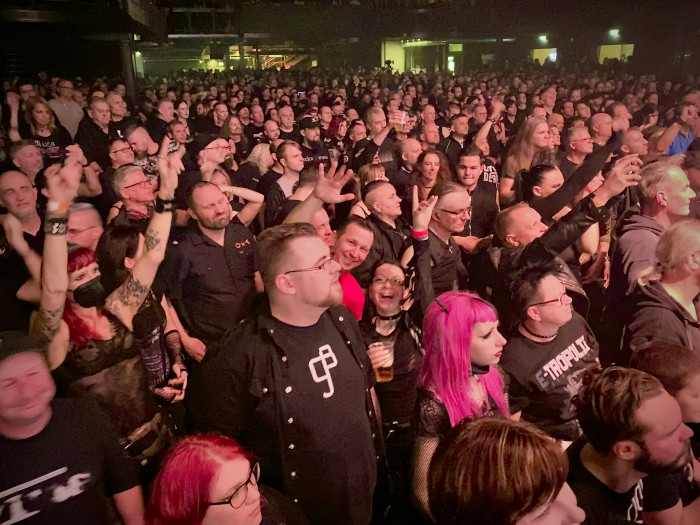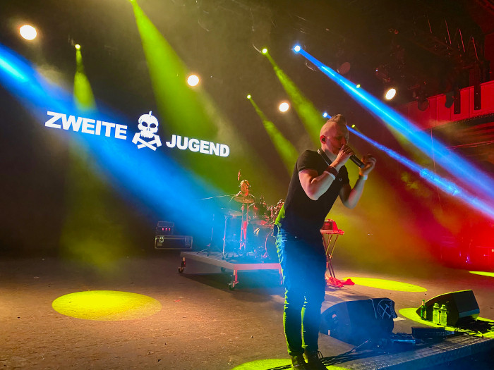 Az idei fesztivált másnap kora délután a nagyszínpadon az osnabrücki Zweite Jugend, azaz Marcel Lüke (dob) és Eli van Vegas (ének) nyitotta meg. Lüke benne van a Jäger 90-ben és a Hätzer-ben is és állandó tagja a Combat Company-nak is. Van Vegas a Combat Company-nál van és egyéb formációkban is besegít élő fellépéseknél. 2009-ben ismerkedtek össze, de csak 2013-ban jött az ötlet, hogy csináljanak egy mellékprojektet is. A minimalista dalok tisztán analógok, ugyanakkor provokatívak és agresszívek is, utalva ezzel a DAF, a Die Krupps és a Nitzer Ebb korai munkásságára. Az ifjúság és az EBM olyan elpusztíthatatlan téma, ami átfogja egymást, mindig gyümölcsöző és generációk óta kíséri az elektronikus testzenét. “Liebe is Luxus”, “Euroträume” és a híres söröskorsó emelgetős “Hoch die Tassen!” felpörgetett minket. A fiúk köszönetet mondtak, hogy itt lehettek, a vírushelyzet miatt 1,5 éve nem léptek fel sehol.