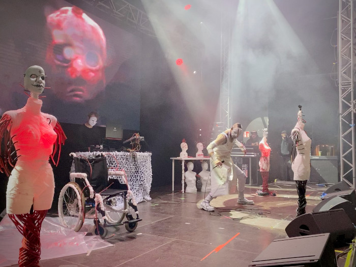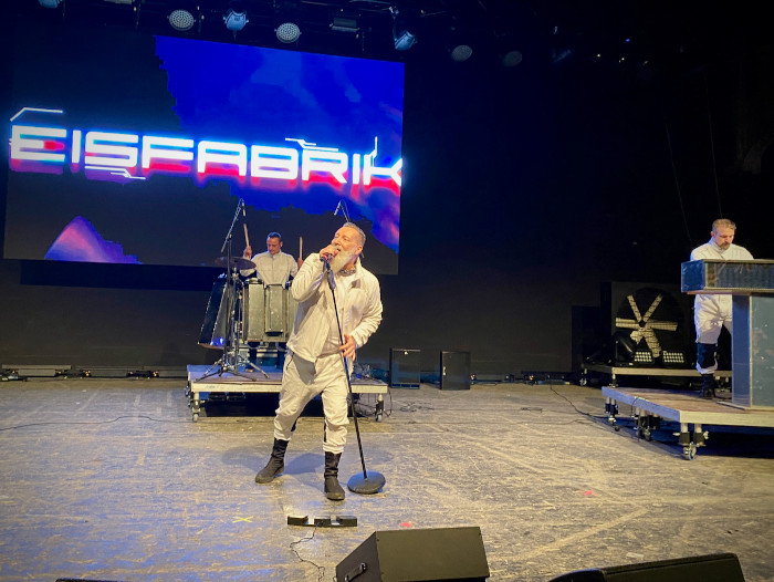 A hamburgi Eisfabrikot 2011 telén hozta létre a fagylaltgyár három elektromos mestere (Hó doktor, Fagy és Celsius fok). A tavaly január végén megjelent legújabb Kryothermalmusik Aus Der Eisfabrik album volt az első lemezük, ami képviselte őket a hivatalos német listákon. Nulla Kelvin, azaz -273,15 fok. Semmi sem mozog, minden áll. Hirtelen valahonnan a fülünkbe jutottak a lüktető future-pop ütemek (” Walking towards the sun”, “Maschinen”, “Ice Crystal”), a jeges lábak újra ringatóztak, a megfagyott testek ismét táncolásra kényszerültek. Nem elég, hogy a ” Schneemann” közben sajnos elment a mikrofon hangja, a közönség igyekezett túlénekelni a hangos zenét, de egy időre a színpadi fények is kialudtak. Azonban ezek a kis technikai problémák még közelebb vittek minket a zenekarhoz. A”Friends” alatt átverekedte magát a biztonsági zónán egy jetinek öltözött rajongó és feljutott a színpadra, ez csak tovább pezsdítette a kedélyállapotunkat. A sziszegő szellő kristálytiszta éneket fújt, ami egyszerre megfagyasztotta és felmelegítette a szíveket. A refrén nevezetű hóvihar feltörte a jég maradékát a felszínről és visszahozta a halott bolygót az élők soraiba. Libabőr – és nem a hidegtől.