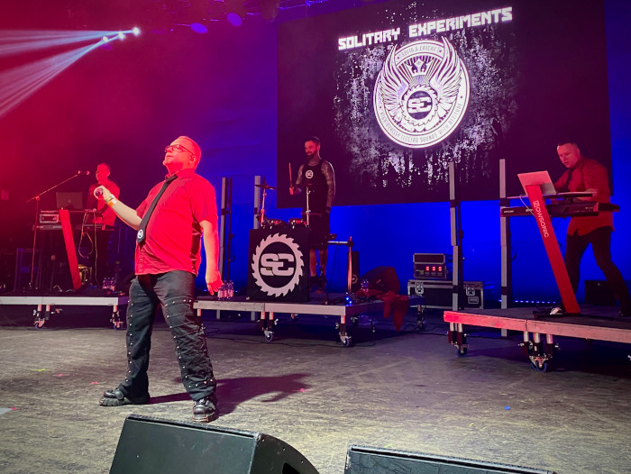 A lassan 30 éve zenélő piros egyeninget és fekete nyakkendőt viselő berlini Solitary Experiments katapultálta magát az elektró nagyszínpadára a fülbemászó szintipoppal és a lendületes EBM ütemekkel. Az első néhány taktus után elszabadult a pokol. Sorra jöttek a klubkedvencek: “Rise And Fall” , ” Immortal” , ” Crash and Burn”, ” Delight”, “Stars”, “Brace Yourself!” , “Trial And Error”. Varázslatot dobtak a tömeg felé, még a standoknál és az emelvényen lévők sem tudtak nyugton maradni a helyükön és táncra perdültek. Dennis szintén nagyon boldog volt, hogy újra színpadon állhat az együttes, a vírus miatt ők sem voltak betáblázva fellépésekkel. A koncert nekem maga volt a levegő-vettem is hát belőle pár mély lélegzetet.