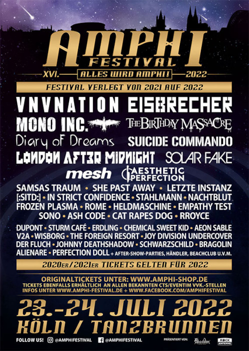 Egy nagyon kimerítő, de csodálatos hétvége ért véget, remek koncertekkel és sok kedves emberrel. Dicséret és köszönet illeti a szervezőket, a stábot, a zenekarokat és a nézőket is, akik közösen gondoskodtak arról, hogy a 2022-es Amphi Fesztivál sikeres lett. Sajnos már többször bebizonyosodott, hogy a Tanzbrunnent kinőtte a rendezvény, de a nagyobb helyszínül választott Lanxess Aréna nem tetszett a látogatóknak és visszakönyörögték a régit. Csak ez azzal járt, hogy sokan nem jutottak be a kisszínpadhoz, illetve nincs hely a nagyobb, árnyékos ülőhelyrész kialakítására. Talán átgondolják ezt még a szervezők és a látogatók is.