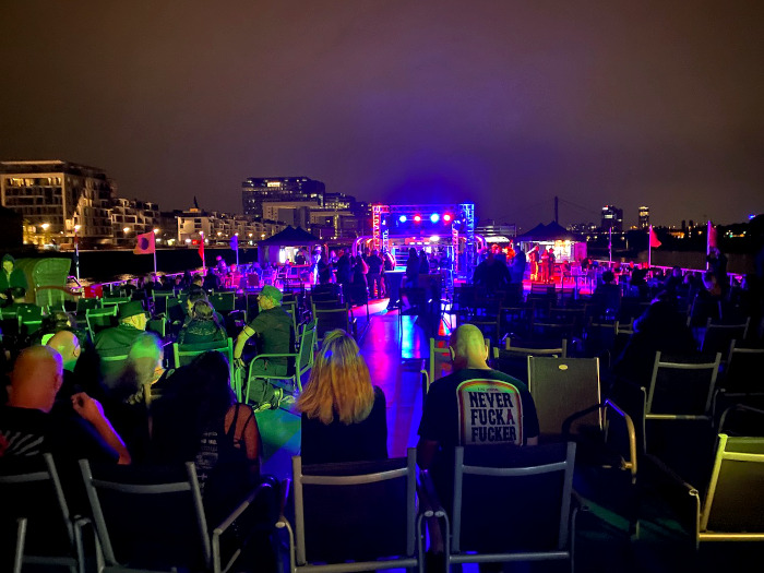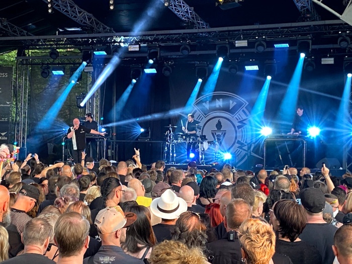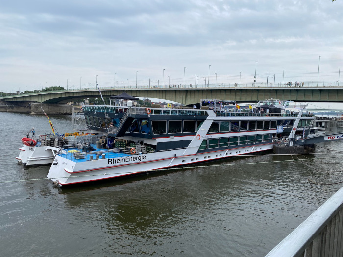 Péntek kora este a kölni Hohenzollern hídról már jól lehetett látni a feketébe öltözött emberek sorát, akik a táskájuk ellenőrzésére vártak és az MS RheinEnergie-vel az Amphi nyitópartiján, a „Call The Ship To Port”-ra beszálltak. Amikor az 1333 jegyre korlátozódó teltházas rendezvény első utasait felengedték a hajóra, a felső fedélzet nagyon gyorsan megtelt. A nap utolsó sugarait egy ital mellett élveztük, mielőtt este 8 óra körül elkezdődött a zenés rajnai hajókirándulás, amely csodálatos koncertestet ígért a S.P.O.C.K, a Welle:Erdball és a Force To Mode zenekarokkal.