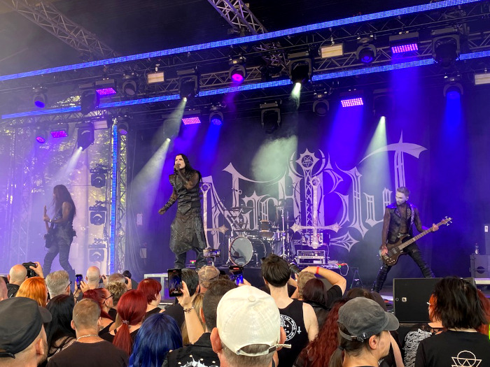 A fesztivál nagyszínpadát szombat délelőtt a gót-metál Nachtblut nyitotta meg. A feketébe öltözött, fehérre kent arcú osnabrückiek áttörték a műfajok határait, kemény gitárriffeket, dübörgő dob groove-okat és koromfekete elektronikus hangzásokat kínáltak. Sötét, kísérteties, megalkuvást nem ismerő dalszövegeik és az énekes Cradle of Fields-es rikácsolásai a bőrünk alá kerültek. Kezdésnek kiváló volt, nagy tombolás volt a „Kaltes Herz”-re.