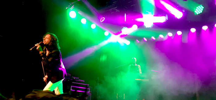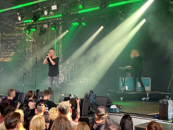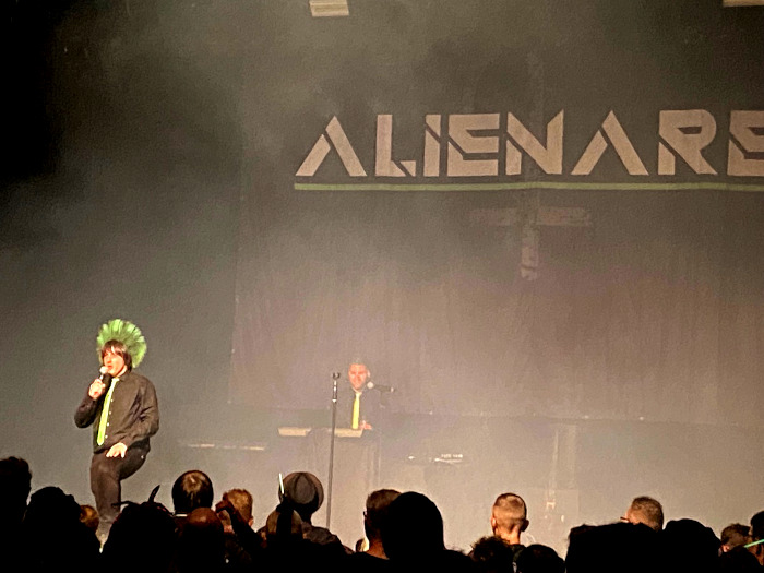 A Színház színpadára elsőként a 2014-ben szólóprojektként indult, majd 2016 óta már duóként létező hamburgi Alienare lépett fel. “Neon”, “Everything Will Be Alright” briliáns keverékei a 80-as évek hangzásának, dark-wavenek és a modern szintipopnak, néhány rockelemmel tűzdelve. A lendületes show máris hatalmas rajongótábort szerzett a zöld hajú bandának.