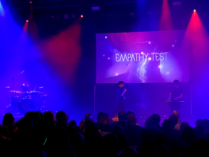 Amire nem számítottunk, hogy kora délután 25 percig fogunk sorban állni a kisszínpad bejáratánál, így a 2013-ban alakult londoni Empathy Test elektronikus popzenéjéről nagyrészt lemaradtunk, szerencsére a „Holding On”-t sikerült épp elkapnunk. Sajnos se hangfal, se kivetítő nem volt kirakva a kint rekedteknek, pedig a hely adottsága lehetővé tette volna. Az együttesre a 80-as évek klasszikus sci-fi filmzenéi, a 90-es évek gitárzenekarai és a modern underground tánczene hatott.