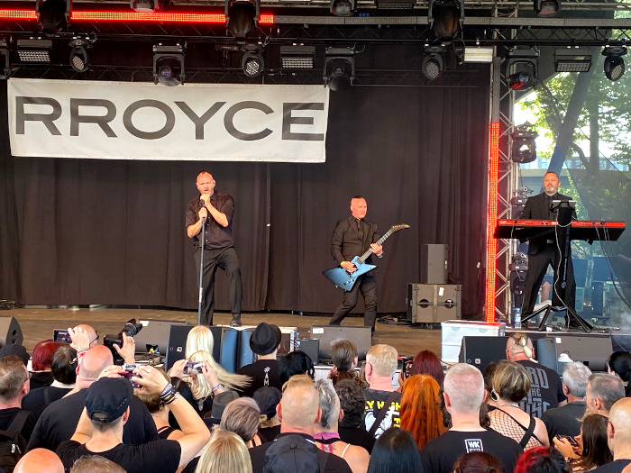 Vasárnap délelőtt az a dortmundi trió kezdett, akik 2013 januárjában léptek fel először élőben az Unbaco underground zenekari verseny alkalmából, ahol is a Rroyce lett a győztes 64 együttes közül. Még ugyanebben az évben a Rock & Pop Preise verseny két kategóriájában is indultak, ahol megszerezték az első díjat a „Legjobb Gothic Wave Band”-ként és a második díjat „Legjobb elektropop zenekarként”. 2014-ben a Sonic Seducer szcénamagazin “Battle of the Bands” verseny keretében az olvasók a 3. helyre szavazták be. A 80-as évek szelleme iránt teljes mértékben elkötelezett banda a csodálatos wave/elektró/szintipop hatását a modern időkbe mentette át. Legnagyobb csápolás természetesen a „Who Needs”-re volt, a „Run, Run, Run” alatt az énekes lejött közénk, majd pár méterrel hátra, aztán vissza előre táncoltatott minket. Mi nagyon élveztük az utazást és a korai aerobikot!
