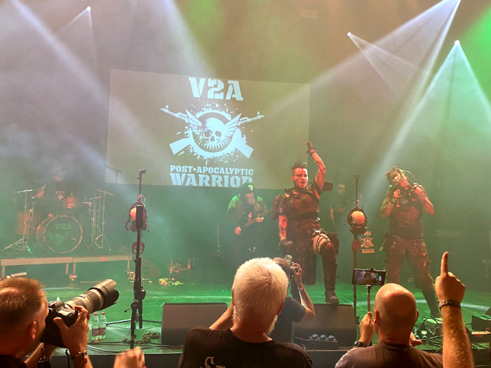 A Színház színpadot a 2001-ben Kevin Stewart (“Drone”) és Ines Lehmann (“Mechanized”) által alapított V2A, egy elit brit/német posztapokaliptikus kemény elektró-indusztriál techno-felszerelés nyitotta meg. Hírnevük túlmutat a szokásos szcéna határain, hiszen számos képregénykonvención és sci-fi fesztiválon léptek már fel. Ezenkívül hivatalosan is komponálják a Mad Max 2: The Road Warrior 40. évfordulóján készült Maxed Out dokumentumfilm zenéjét. Extravagáns, észbontó színpadi előadásairól és brutális technójáról híresek, ritmusok és agresszív énekhangok jellemezték őket. Én nagyon örültem a Shock Therapy-s „Hate Is A 4 Letter Word” feldolgozásnak.