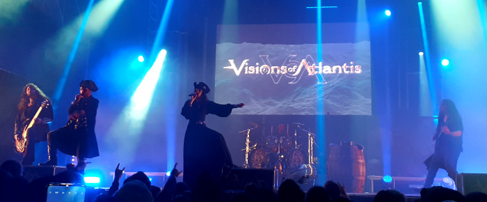 Az estét a 2000 óta létező osztrák Visions of Atlantis zárta. Kicsit kiürült a színpad előtti rész, azonban ez nem rontott a hangulaton és ragyogóan indult a banda. Az énekesnő ügyesen színpadra állította magát power frontasszonyként, ellenőrzése alatt tartotta közönségét és vokálisan is jól harmonizált a kalóznak beöltözött énekessel. Folyamatosan részvételre buzdítottak mindenkit, a zene a hallójáratunkba fészkelte magát és ott jó hangulatot teremtett. Gazdag hangzás, sok dinamika volt a színpadon és jó interakció a közönséggel. Sok kezet láttam a levegőben, taps és éljenzés mindenhol. Az utolsó előtti számnál már elkezdett cseperegni az eső, de ez nem riasztotta el a rajongókat, tovább tapsoltak és lelkesedésüket akusztikus ujjongással is kifejezték.