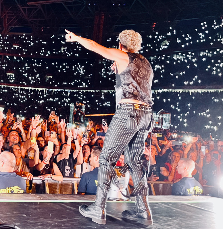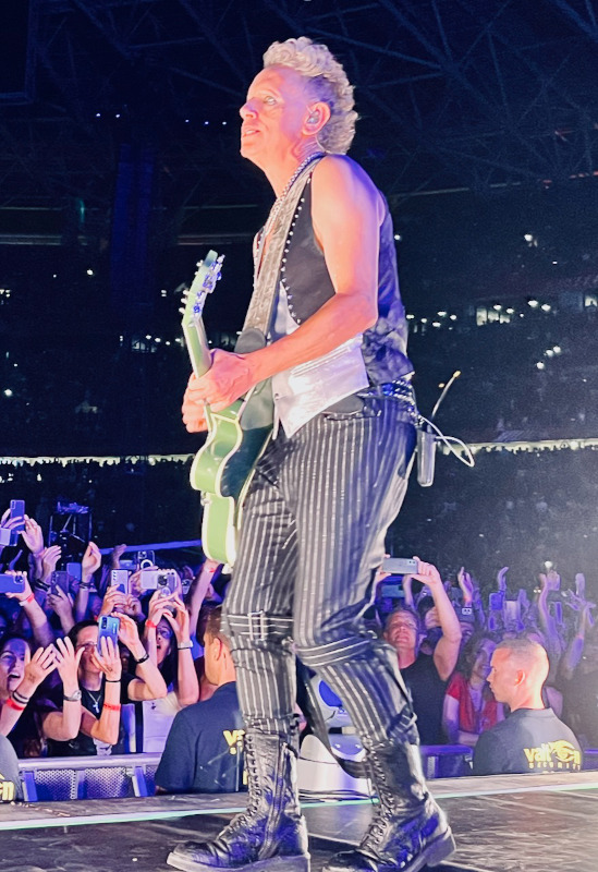 Ezután ismét jött a „Martin DJ-szett“ (szerintem ezúttal is kissé halkan, legalábbis esélyem se volt „leshazamozni“ az elhangzott dalokat, elnyomta a zenét a beszélgetésünk), mi várakoztunk, száradtunk, és megismerkedtünk egy kifejezetetten jó arc biztonsági őrrel, aki – miután udvariasan megkért minket, hogy vegyük le a vizesüvegünkről a kupakot – elmondta, hogy 1988 óta rajongó, és a legnehezebb feladata az lesz, hogy ne forduljon meg Dave felé, amikor majd kijön a kifutóra. Néha ránéztünk koncert alatt is, és a szenvtelen arcon azért mosolyt láttunk, sőt, néha a foga között még a dalszöveget is énekelte.