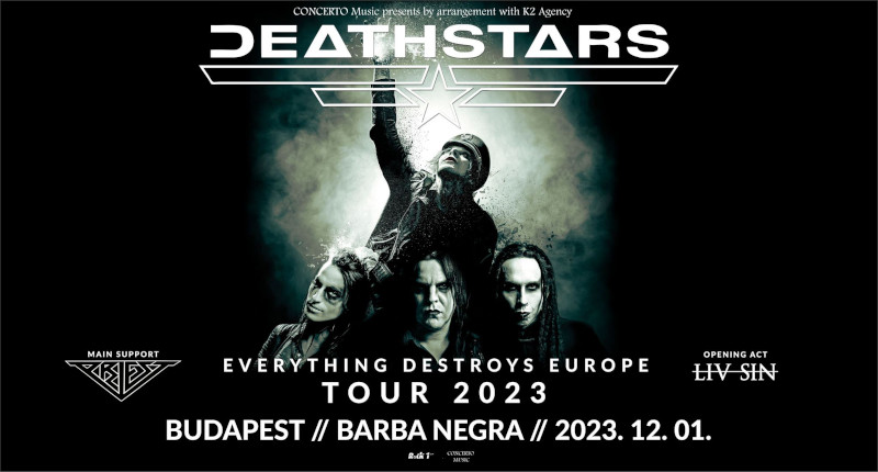 A Deathstars az Everything Destroys Europe Tour 2023 keretén belül látogat el december első napján Budapestre. A svéd indusztriál rock/death glam csapat legújabb lemezére 8 évet vártak a rajongók, a banda visszahozza a glam erejét a májusban kiadott Everything Destroys You albummal. Adrenalin, bombaszt és csillogás keveréke vár rátok. A szintén svéd Priest szintipop trióval és a svéd Liv Sin, a Sister Sin énekesnő legújabb metál bandájával megrázzák a Barba Negra színpadát.