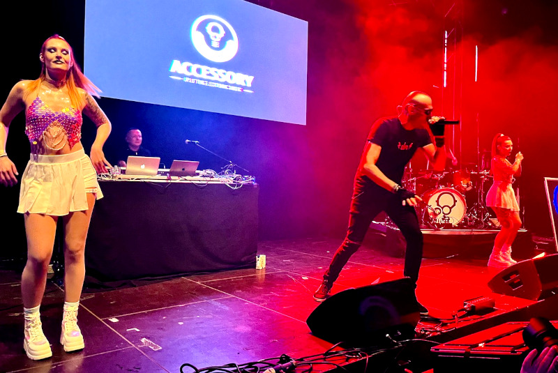 Megkezdődött a kisteremben a délutáni torna. A chemnitzi Accessory a kemény elektróütésekkel megmozgatta a tömeget. Még nem volt olyan zsúfolt a színpad előtti terület, de a jelenlévők jól kihasználták a teret a táncra. Az ötletgazda Dirk Steyer tele volt energiával, újra és újra ösztönzött minket a mozgásra az olyan számokkal, mint a „Tanzrichtung Vorwärts”, „Voran” vagy a klubkedvenc „Tanzflächenmann”. Egy csipetnyi aggrotech, EBM hatások és fülbemászó, hajtós darabok kerültek felkínálásra, előremutató táncirányzattal, mindig az ütemet követve. Sajnos az élő dob szinte teljesen elnyomta nemcsak az énekes hangját, de a szintit is, nem is értettük miért kell a dob egy elektronikus fesztiválra, vagy ha már van, miért ennyire hangos?