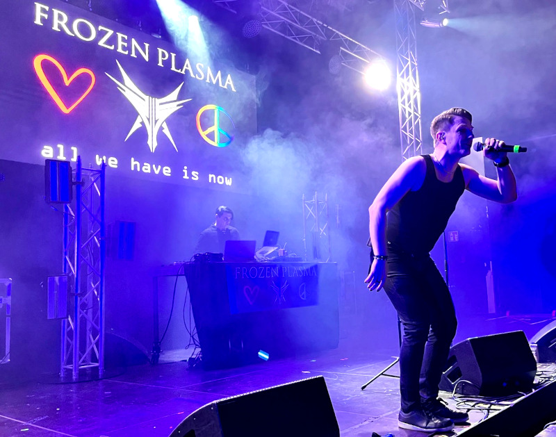 Siettünk át a kisszínpadra, ahol már a Frozen Plasma játszott. A német elektropop zenekart 2005-ben alapította Felix Marc és Vasi Vallis. Mindketten más zenekarokban is tevékenykednek és szólóművészként is aktívak. Felix (Diorama) állt az akció középpontjában, énekelt és táncolt a színpadon, míg Vasi Vallis (NamNamBulu, Reaper) a szinti mögött állt és a hangokért felelt. A frontember megígérte a közönségnek, hogy az egy órás műsor alatt emelni fogják a terem hőmérsékletét és folyamatosan kérte is a tömeg csatlakozását, amit természetesen szívesen teljesítettek a jelenlévők. A sok tánc és az olyan slágerek, mint a „Tanz die Revolution”, „Warmongers”, „Gefühlsmaschine”, „Maniac”, „Crazy”, „Irony”, „Murderous Trap” teljesen felforralták a koncert végére a Turbinenhalle kistermét.