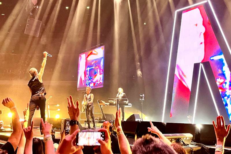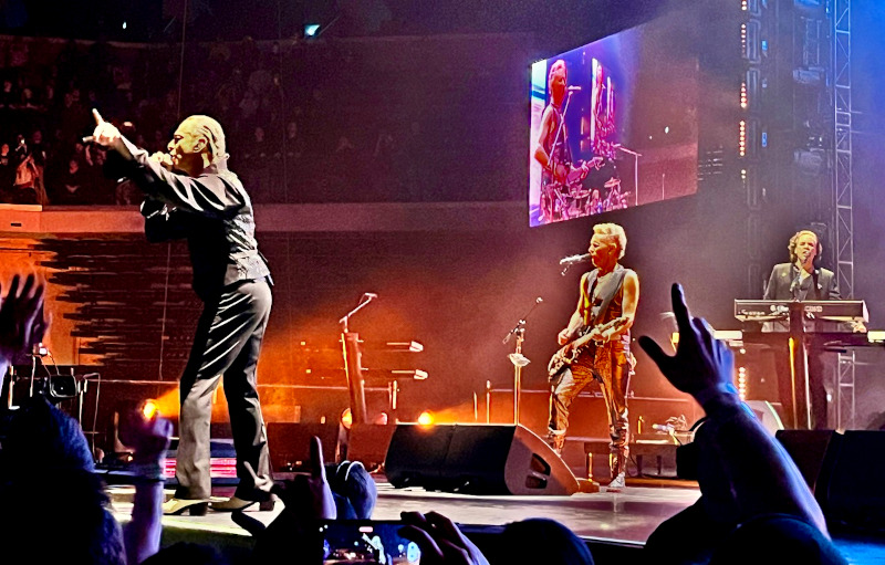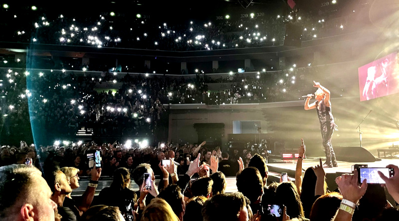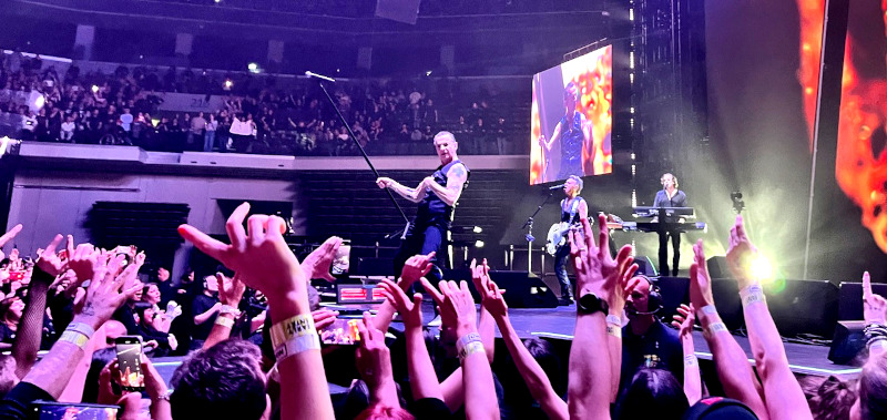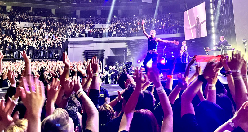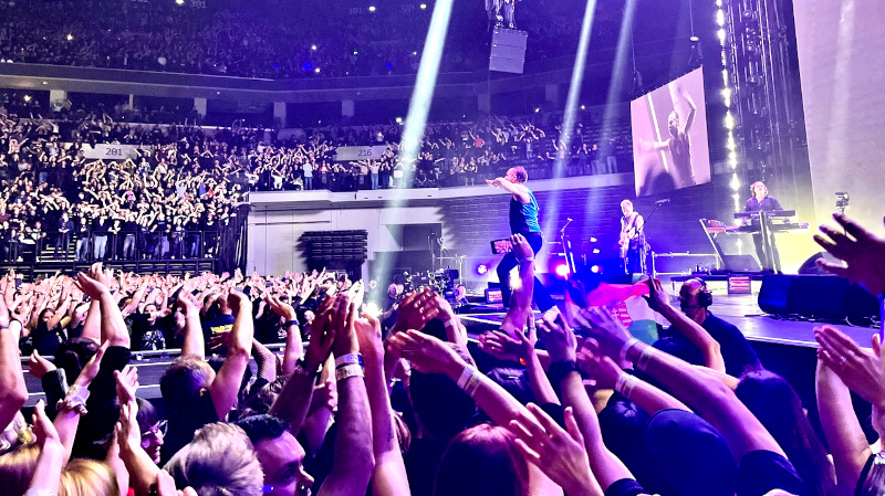 Ezután az MVM Dome felé vettem az irányt. Már a metróból felfelé jövet látszott a hatalmas tömeg, és az aréna körül is rengetegen álltak már, kicsit fázósan a kora tavaszi élénk szélben. Lenyűgöző volt látni a stadion hatalmas kivetítőjén, hogy ma este a Depeche Mode játszik! A beengedés zökkenőmentesen zajlott. Most voltam először az MVM Dome-ban, és nekem kellemes meglepetés volt, nagyszámú segítő személyzettel, kulturált környezettel, egyedül a kizárólag melegvizet folyató csapok szereztek kellemetlen meglepetést.