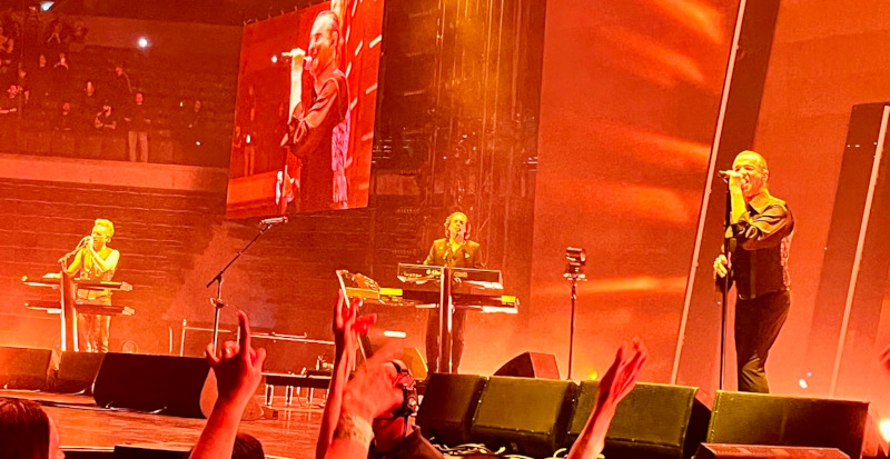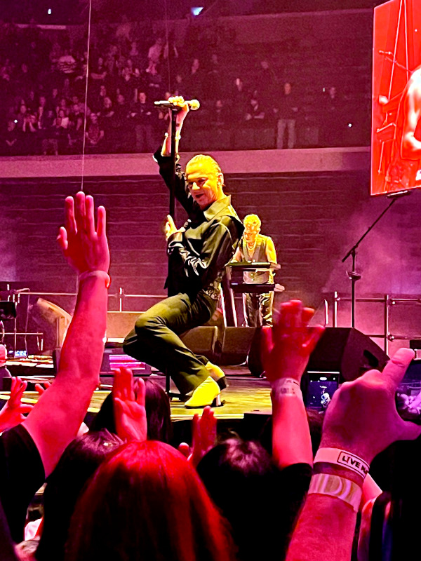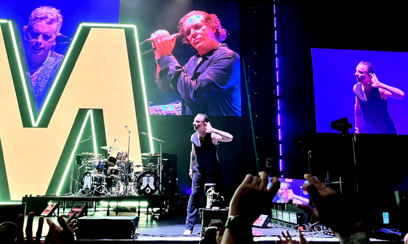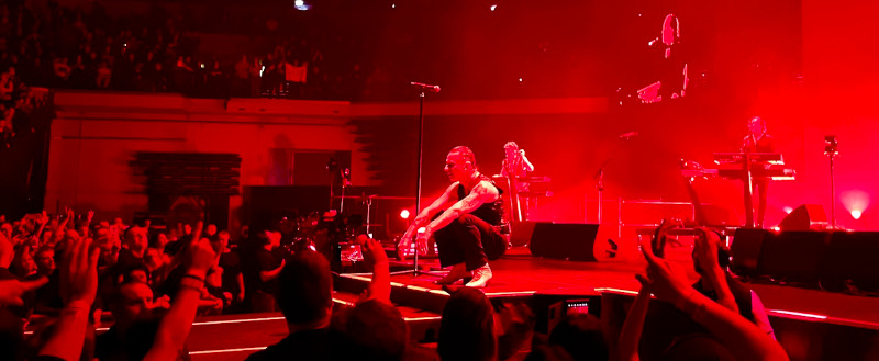 Az It’s No Good szamaras kivetítésénél – akárcsak az intrónál – mindenki menetrendszerűen vette elő a telefont: valahogy szinte az volt az ember érzése, hogy ez a setlist így lett összerakva, hogy legyenek a „tombolós“ dalok, aztán következhetnek olyan szerzemények, ahol csak lehessen bámulni, és persze videózni. A dalcsokorban egyébként most éreztem meg a koncepciót, hiszen tulajdonképpen csak a My Cosmos Is Mine és Black Celebration volt NEM kislemezes dal: azaz itt a rajongótábor teljes kiszolgálása volt a cél a slágerparádéval, nem vittek bele annyi döccenőt, mint pl. a Global Spirit Tour első felében. Nagyon szomorú voltam anno, amikor a Sister Of Night-ot lecserélték a Policy Of Truth-ra, de el kell ismernem, hogy joban működött a koncerten a Violator klasszikusa. Most fedeztem fel, hogy a harmadik versszakban van egy kiállás, amit eddig nem vettem észre a korábbi verziókban (ugyanezt fedeztem fel a Precious-nél is). Az In Your Room sose volt ilyen zúzós, majd az Everything Counts ünnepélyes pillanatai következtek. Azzal, hogy nemrég egy dallal rövidebb lett a setlist , több helyet engedtek a közönségénekeltetésnek, és a Construction Time Again slágerének „midis“ lezárásában alaposan meg is dolgoztatták a hangszálainkat. Vicces közjátékként Dave kicsit lemaradt az első „it’s a competitive world“ részről. Némi meglepetésre nem dicsért meg minket a dal végén Dave, azaz nem volt „so much better than…“, bár az utóbbi koncerteken erről mintha leszokott volna az énekes. A közönséget egyébként csak dicsérni tudom, nálunk az ülőhely utolsó soraiban már a Policy Of Truth-nál felállva táncoltak az emberek, sok ülőhelyes kiment a folyosóra és ott tombolta végig a koncertet – szerencsére a bizonságiaknak sem volt ezzel semmi kifogása.