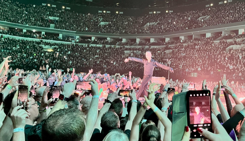 A tavaly nyári early entry-kiemelt állóhelyes élmény után most egy távolságtartóbb verziót szavaztam meg: majdnem a színpaddal szemben ültem, azaz a hangzásra mentem rá. Bizony, a zenekar így eléggé távoli volt, főleg, hogy az MVM Dome kivetítői sem éppen a legnagyobbak, a hangzás viszont minden szempontból „elért“ hozzám, de erről majd később.