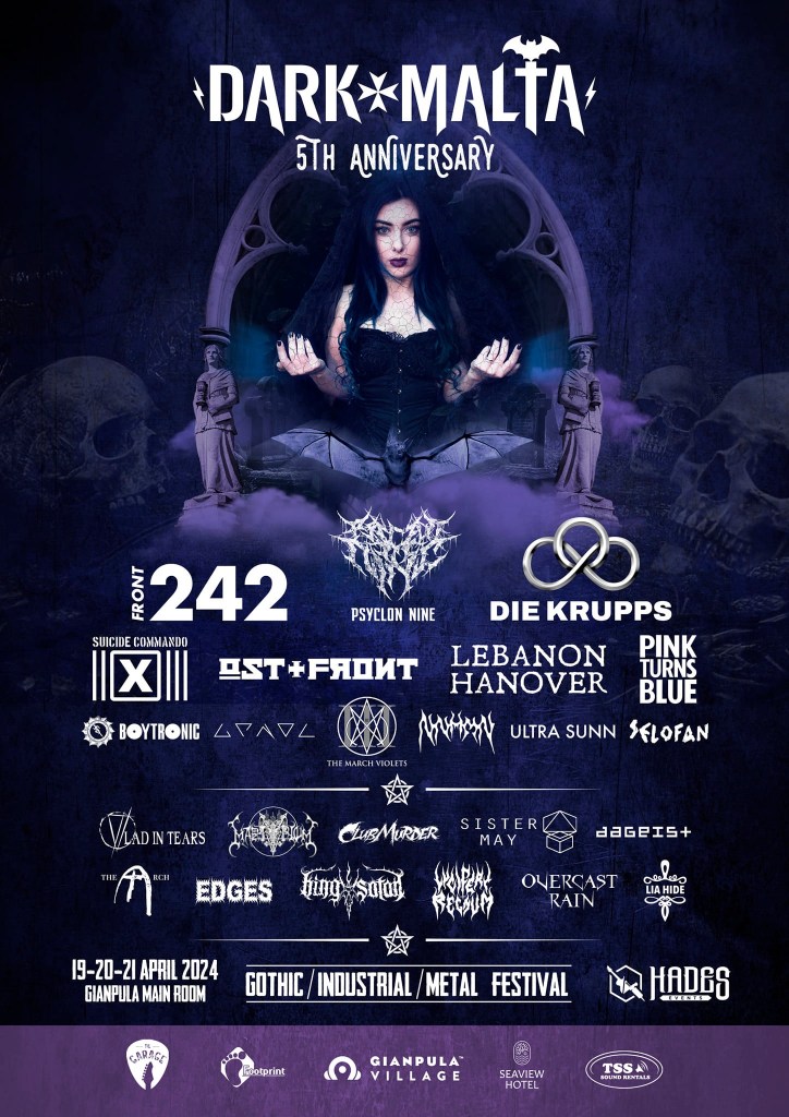 A Dark Malta Málta egyetlen gothic/indusztriál/metál eseménye, ami nagy népszerűségnek örvend azon látogatók körében is, akik a fesztivált egy mediterrán nyaralással kötik össze egy olyan országban, amely történelméről és meleg éghajlatáról híres. Az ötlet azután született, hogy DJ Hades és Aleera De Lune, a fesztivál szervezői kitalálták Málta első gótikus fesztiváljának megszervezését. A helyszín a Gianpula Village főterme, ami régen egy egyszerű parasztház volt, mára már Málta legnagyobb és legjobb szabadtéri éjszakai klubjává alakult, amely egész évben a sziget legmenőbb rendezvényeinek ad otthont. A gyönyörű kertekkel körülvett klub hét bárral, korszerű hang- és világítási rendszerrel, exkluzív VIP részleggel rendelkezik. Egy kifinomult szabadtéri szórakozóhely dzsungelszerű környezetben, amely összeköti a tömeget a zenével. Ha pálmafák közt a medencében szeretnétek fesztiválozni, ez nektek való lesz. Remek hely, ahol megtapasztalhatjátok a gyönyörű nyári naplementéket, miközben a legmenőbb zeneszámokra táncoltok és élvezhetitek a sziget gyönyörű tájára nyíló csodaszép kilátást is. A fesztivál első kiadása 2018-ban egynapos eseményként került megrendezésre, 2019-ben a fesztivál 2 napos lett, 2022-ben pedig már 3 napossá nőtte ki magát. 2023-ban volt a valaha volt legmenőbb rendezvény, ugyanis először volt medencepartival egybekötve. Szintén közkívánatra rendezték meg hozzá a Művészeti Kiállítást és szombaton az afterpartit is. Idén április közepén pedig az 5. évfordulóját ünnepli számos dj-vel és olyan nagyszerű bandákkal, mint a Front 242, Die Krupps, Psyclon Nine, Suicide Commando, Boytronic, Ost+Front, Pink Turns Blue, Lebanon Hanover, Edges, Ultra Sunn, Vlad In Tears, Selofan, csak hogy a nagyobbakat említsük.