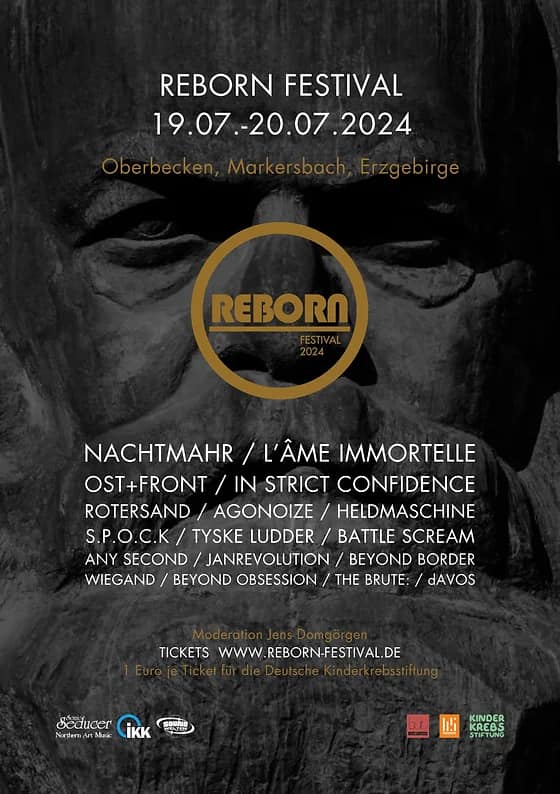 A kétnapos Reborn fesztivált 2. alkalommal rendezik meg július harmadik hétvégéjén a németországi Raschau-Markersbach-ban, a német-cseh határon elterülő Érc-hegységnél, 850 m magasan, így ez az esemény a legmagasabban megtartott fesztivál Németországban. Közvetlen a rendezvény mellett található egy tó is, ahol fürödni is lehet a látogatóknak. A vonat és buszállomásról shuttle buszt is indítanak a szervezők a színtérre, de a kocsival érkezőknek is rengeteg parkoló áll majd a rendelkezésére. Kifejezetten a fesztivál alkalmából kempinget és különféle gasztronómiai látványosságokat helyeznek majd el a helyszínen. A zenei színfoltok mellett gótikus termékekkel, változatos szabadidős programokkal, napközbeni zavartalan fürdőzési lehetőséggel várják a vendégeket. A jegyár itt nem foglalja magába automatikusan a kempingbe való belépést, külön kell venni a fesztiválbérlet mellé sátorjegyet is. S.P.O.C.K, Rotersand, Beyond Obsession, Jan Revolution, Beyond Border, Wiegand, Battle Scream, The Brute, dAvos biztosan lázba hozza a szintipop rajongókat. Nem csalódnak majd az indusztriál-EBM (Agonoize, Tyske Luder, Nachtmahr, In Strict Confidence, Any Second) és a rockosabb hangzások rajongói sem, Ost+Front és Heldmaschine játszik majd nekik. A koncertek után minden este helyi dj-k várják a táncos lábúakat, akik az afterpartikon a szcéna legnépszerűbb szintipop, wave, 80as, gót és ebm slágereivel készülnek.