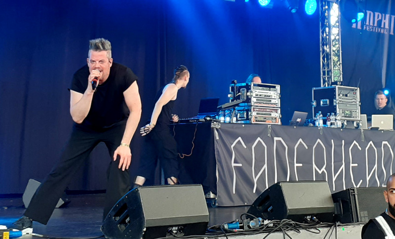 Siettem át a nagyszínpadra, ahol a szintén hamburgi Sami Mark Yahya projektje, a Faderhead lépett fel. Számos stílust ötvözött, köztük az aggrotech-et, az elektropop-ot és a house-t. Míg más bandák azon aggódnak, hogy nappal játszanak, Sami élvezte a sok ismerős arcot, akiket nem lát olyan jól a klubban. Bármennyire is agresszívak néha a hangok, annyira barátságos és humoros volt az énekes a színpadon, miközben bemutatta a már említett súlyosabb darabokat és dallamos pillanatokat. Változatos és ritmusos dalaival („Generation Black”, „Tanz Zwo Drei Vier”, „No Gods, No Flags, No Bullshit”, „All Black Everything”, Too Dead For Life”) igazán felpörgették a közönséget, ebben segítségére volt a három szintis közül kettő is, akik hergelték és tapsolásra, táncolásra ösztönöztek mindenkit. A közel egy órás show maradandó nyomot hagyott a rajongók lelkében. Miután jól befészkeltem magam az első sorba, onnan már nem mozdultam, így a kisterem további bandái sajnos kiestek nekem.