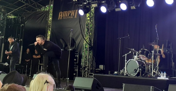 Átnéztem a nagyszínpadra, szerencsére az eső is elállt. A Diary Of Dreams évek óta a német és nemzetközi gótikus szcéna élvonalában van. A saját stílusukkal és a frontember, Adrian Hates összetéveszthetetlen hangjával az urak számtalan klubslágert produkáltak már. Most sem hiányozhattak a megszokott dallamos-melankolikus szintihimnuszok, valamint a mély balladák sem. Az olyan számok, mint a „Kindrom”, „Menschfeind” és a „Butterfly: Dance” táncolható stílusban szólaltak meg valahol a dark-wave, az elektró és a szintipop között, a nagyszínpad közönsége pedig annyira lelkes volt, mint amennyire magabiztos volt a szövegekben. Az énekes felemlegette a két évvel ezelőtti Amphi-s koncertet, ahol percekre elment az áram, a felhőket nézve abban reménykedett, hogy ez most nem fog újra megtörténni. Sajnos most sem tudtam sokáig maradni, rohanás volt át a kisterembe.