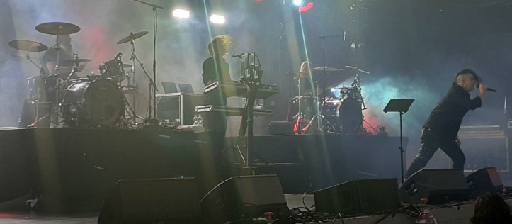 Eljött a fesztivál utolsó bandája. A készülődés alatt fekete függönnyel eltakart nagyszínpadot láthattunk csak, nagyon titokzatos volt az immár 35 éves múltra visszatekintő berlini szintipop And One. Lehullt a lepel az elsőként játszott „U-Boot-Krieg In Ost Berlin” alatt, ami máris felforrósította a hangulatot. A billentyűzetek kicsit a háttérben voltak, piros emelvényre állítva, hogy több hely legyen előtte, Steve Naghavi frontembernek szüksége is volt erre. A banda keresztmetszetet mutatott be a teljes alkotói időszakából olyan klasszikusokkal, mint a „Techno Man”, „Second Voice”, „Get You Closer” vagy a „Für”. Az olyan daraboktól, mint a „Krieger”, „Traumfrau”, „Sternradio” vagy a közönségkedvenc „Military Fashion Show” a tömeg izgalomba jött, de az olyan újabb dalokat, mint az „Unter Meiner Uniform” is nagyon jól fogadta a nép. Néha átvette Joke Jay a mikrofont („Shouts of Joy”) vagy duettben énekeltek együtt. A zenén kívül Herr Naghavi újra és újra megmutatta előadói tulajdonságait is a színpadon átpördüléssel és szellemes bemondásaival a dalok között. A banda hatvan percig ünnepelhetett a rajongóival, kiváló teljesítményükkel méltó zárásai voltak a fesztiválnak. Sajnos hiába tapsoltunk, nem kaptunk ráadást, csak az énekestől egy középső ujjas bemutatást a koncert végén.