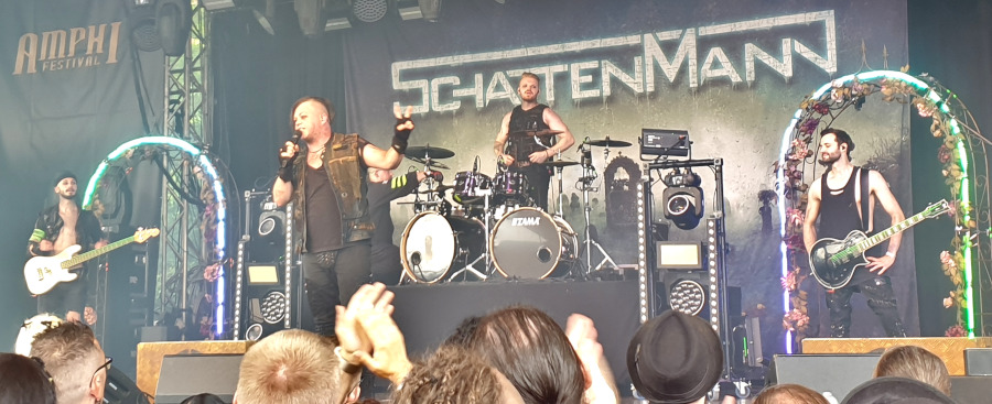 Az utánuk következő nürnbergi Schattenmann egy egészen különleges jelenség a német zenei életben. A kvartett folyamatosan fejlesztette és kortárs indusztriális hatásokkal a legmodernebb metálra csiszolta hangzását. Erőteljes, dinamikus gitárok, amelyek igazi riffszörnynek bizonyultak és hatékonyan mutatták be őket a dobok és a basszusgitár kíméletlen groove-gépe, valamint a finoman összefonódó szintihangzás. A karizmatikus énekes mindenütt jelenlévő frontemberként tűnt fel, szinte folyamatosan mozgásban volt, rohangált a nagyszínpad egyik végéből a másikba, a közönség közé pedig egy felfújható gumiférfit dobott. Ők már nemcsak felmelegíteni akartak minket, hanem elgázosítani is, valami elképesztően büdös zöldesszürke ködöt fújtak ránk, úgyhogy átrohantunk a másik színpadra.