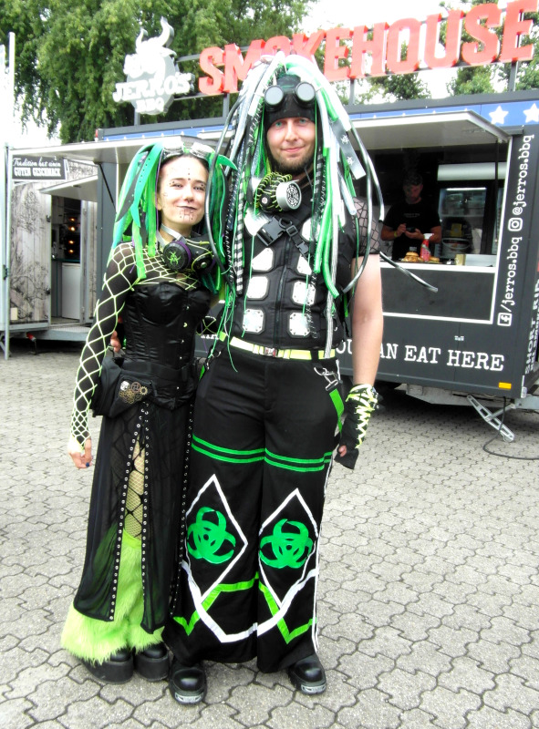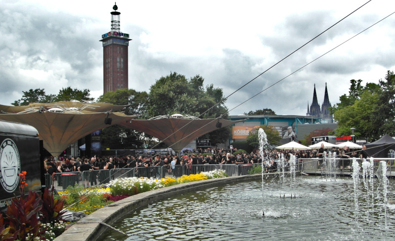 Számomra hihetetlenül gyorsan elszaladt az idő ezen a két napon. Az időjárás istenei ezt a hétvégét viccesen fogták fel, szombaton borús volt az ég, néha esett is, vasárnap pedig hét ágra sütött a nap és csodaszép időnk volt. Köln a testi épségünkről is gondoskodott. A helyszínen a teljes gasztronómiát nem a szervező, hanem a házon belüli vendéglő irányította, de senki sem maradt étlen-szomjan, volt elegendő választék, mint például pizza, hamburger, falafel, ázsiai snack bárok, gofri, gyümölcsök és nem szabad megfeledkezni a currywurst-krumpli kombóról sem. Több helyen volt ingyenes ivóvíz-vételi pont is és én szerencsére sosem álltam hosszasan a wc-re várakozva, de láttam, hogy a női mosdók előtt néha kígyózó sorok alakultak ki. Ahogy az Amphi-nál lenni szokott, most is a fekete színtér első osztályú bandáiból válogattak nekünk, szuper koncerteken vehettünk részt, autogramokat kérhettünk kedvenceinktől vagy épp fotózkodhattunk velük. A bevásárlóstandokon pedig beszerezhettük a trendi ruhakölteményeket, cd-ket, egyéb használati tárgyakat.