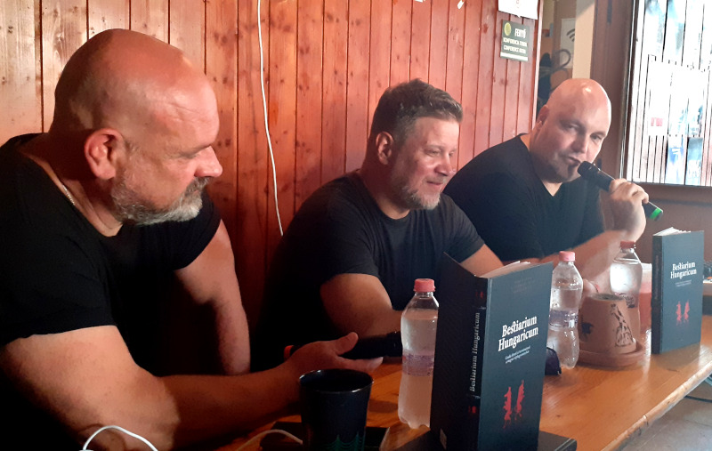 A vasárnapi munkám kora délután a BBM Placc-ra szólított, így részt vehettem a Bestiarium Hungaricum könyvbemutatóján. Népszerű műfaj a világban a bestiárium, Magyarországon azonban még nem készült – vagy ha készült is, nem maradt fenn – olyan mitikus figurákról, szörnyekről írt gyűjtemény, amely a Kárpát-medence monda- és hiedelemvilágának szereplőit veszi számba. Csodaszarvas, turul, boszorkány és a különféle nyomódémonok: ők és még sokan mások kaptak helyet ebben a könyvben. A két illusztrátor, Szathmáry Istvánnak és Németh Gyulának, valamint a Cser Kiadó vezetőjének, Vörös Andrásnak a segítségével csodás lényeket és teremtményeket ismerhettünk meg a magyar néphagyományból.