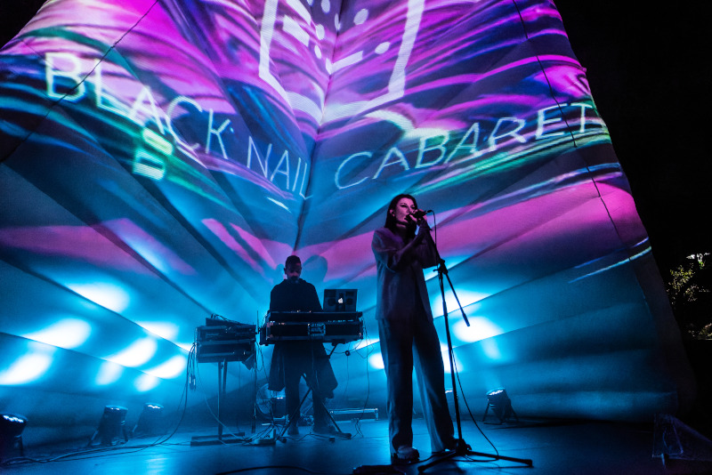 Kis késéssel kezdett a Delta színpadon a magyar dark pop duó, a 2008-ban alapított Black Nail Cabaret. A formáció tagjai Árvai-Illés Emese (ének) és férje, Árvai Krisztián (billentyűk). A BNC máig lebilincselő színpadi jelenléttel rendelkezik, a synth noire számok („Teach Me How To Techno“, „Darkness Is A Friend“, „Autogenic“, „Bête Noire“, „No Gold“) alatt a kozmoszról és a bolygókról láthattunk háttérvideókat, Emke is kivételesen csupa fehérben volt, ruhája fejdísszel és kesztyűvel vált teljessé. „A Hegy” című dalukat itt játszották először, ami a Mátra hangja zenei modell (a pontos háromdimenziós felszínt felhasználva, „hullámozható” a domborzat, elektromos jellé alakítható) segítségével készült el. Így hol máshol is lehetett volna hitelesebb, mint a Fekete Zaj fesztiválon? Ráadásul éppen teliholdkor.