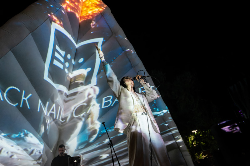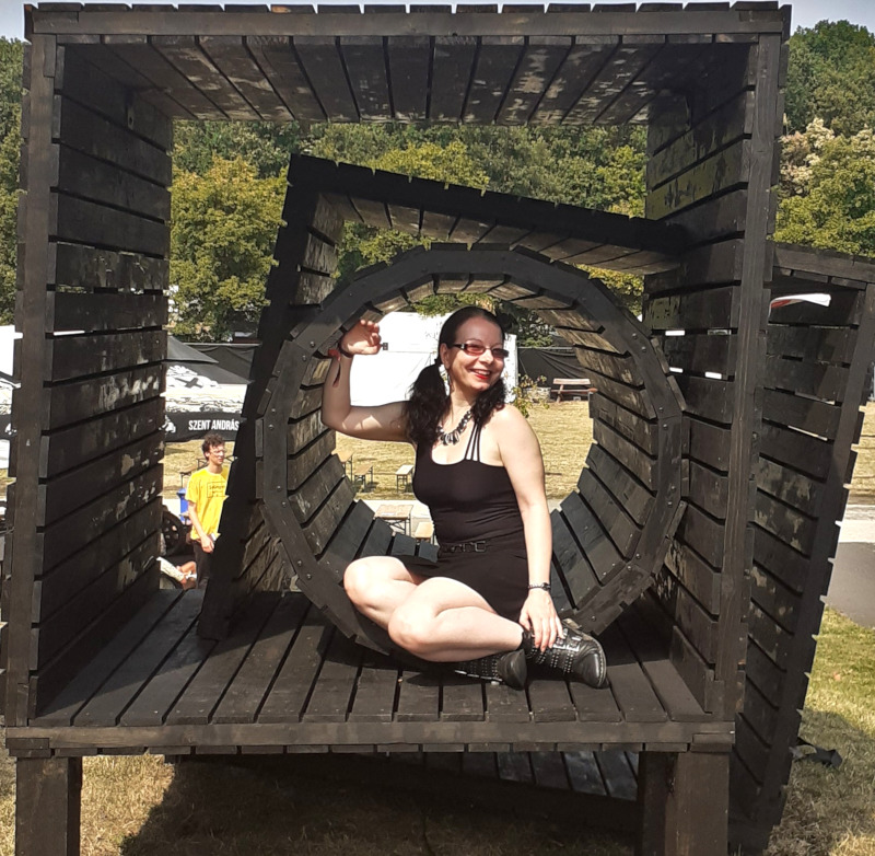 Belenéztem Fehér Lili, alias Lenkke Delta színpadi fellépésébe is. A hölgy az alternatív, elektronikus pop vonalon mozog, aktívan 2018 óta zenél. Saját, angol és magyar nyelven íródott szerzeményeit az éneklésen túl rappeléssel, dorombbal, furulyával és potméterekkel kelti életre. Dalait pörgős, ám mégis merengős hangulatban adta át a közönségnek.
