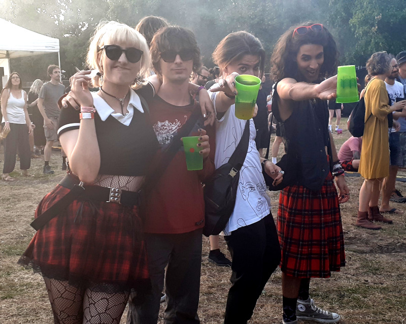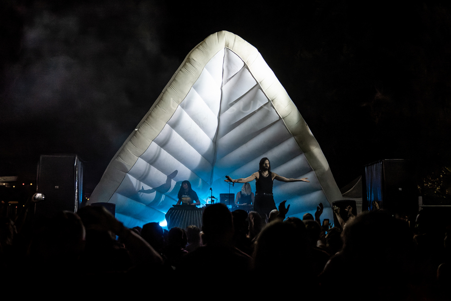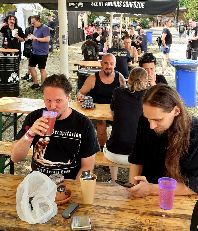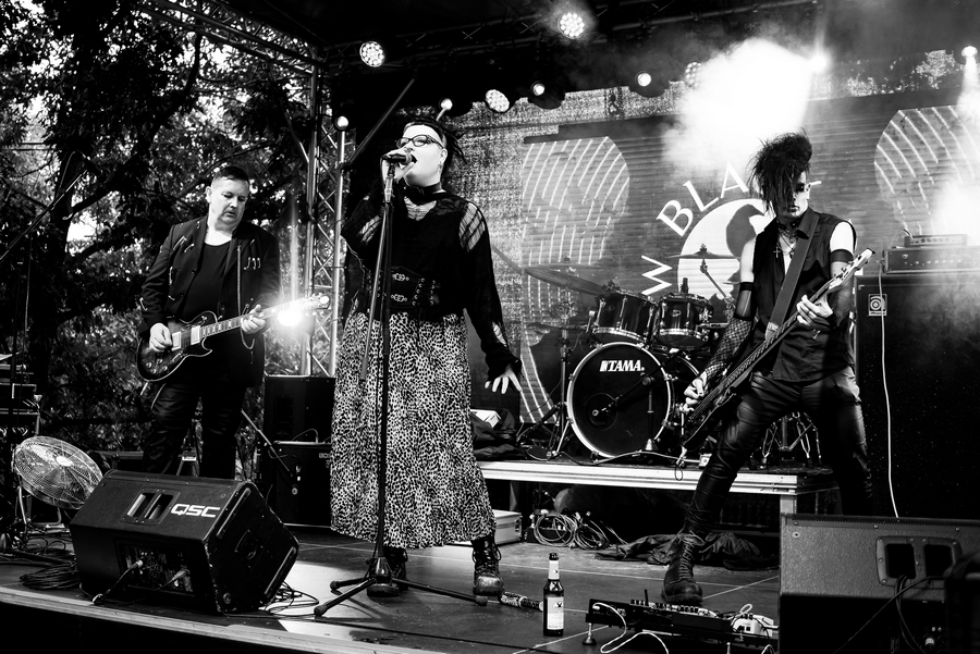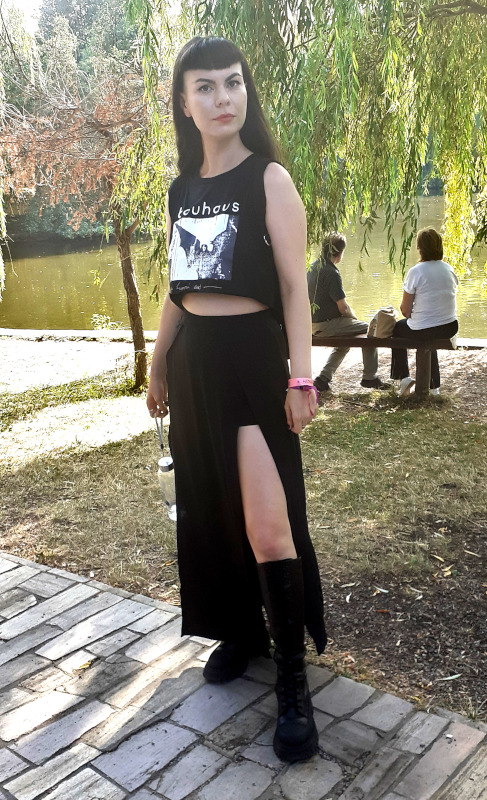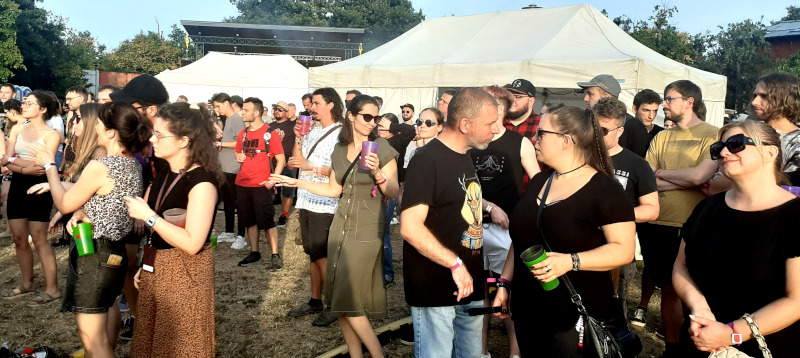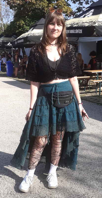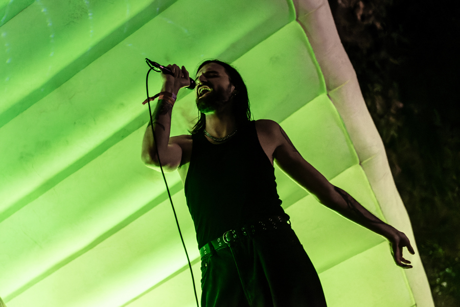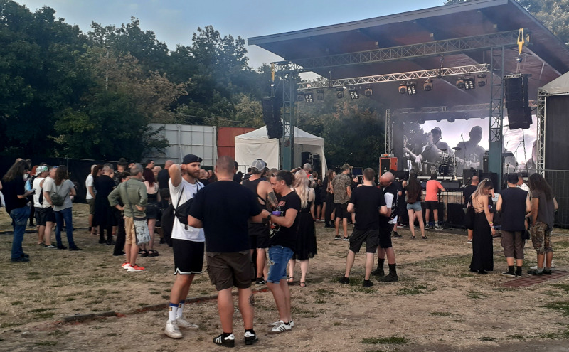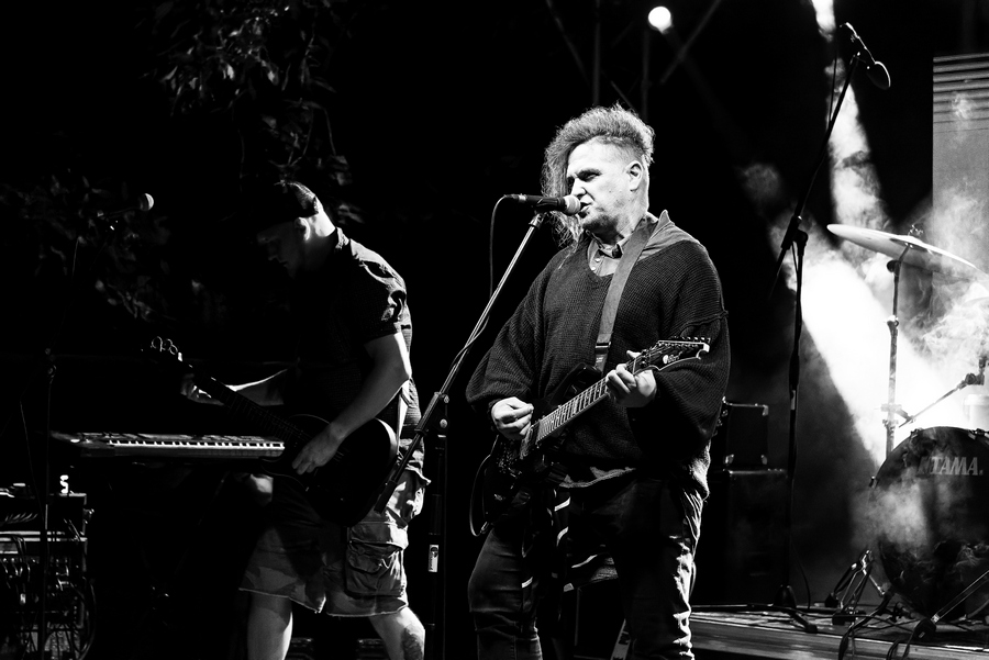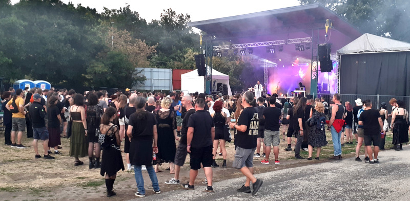 A szombati műszakom után az Osztálykirándulás színpad felé vettem az utam, ahol a Crow Black Dream babonázta meg a dark-gót lelkeket már rögtön az elején a fekete füsttel. A „Ki Vagyok Én?“, „Ez Egy Olyan Világ“, „Fázom. Félek” vagy a „Fantomfájdalom” dalokban a banda olyan életképeket idézett meg a darkwave és a poszt-punk, illetve a gót rock zenei vonal eszközeivel, amelyek ismerősek lehettek a rendszerváltás környéki magyar underground klubokból. Az alternatív zenei közönség összetartozásának érzését és zenéit szólaltatta meg a 2021 óta aktív apa-fia duó, első albumuk, a Csak csend, idén jelent meg. Atmoszférikus alapokra épülő, világtól való elszakadás vagy éppen elmenekülést ecsetelő szövegviláguk melankolikus, apokaliptikus érzést festett meg. Az utolsó „Aludj Még“-ben az előző esti dj, Lvcretia is vokálozott. Ahogy körbenéztem, elég sokan voltunk és mindenki átszellemülten táncolt a környéken. Sikeres kezdése volt a napnak.