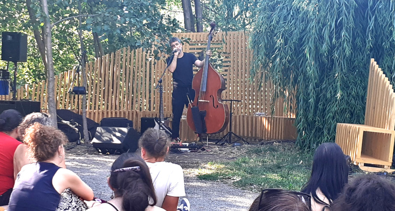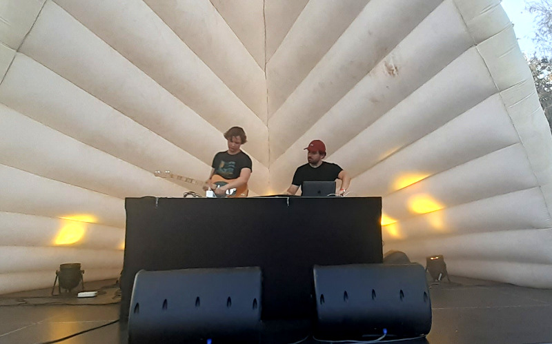 A péntek délutáni műszakom végén még éppen elkaptam a Kacsatónián játszó portugál Jorge Da Rocha-t. Gyönyörű házasság az akusztikus és az elektronikus világ között egy szólóművész kezében, akinek a segítségével tóparti csodás környezetben mély és inspiráló hangokat fedezhettünk fel zeneileg érzelmes tájakon.