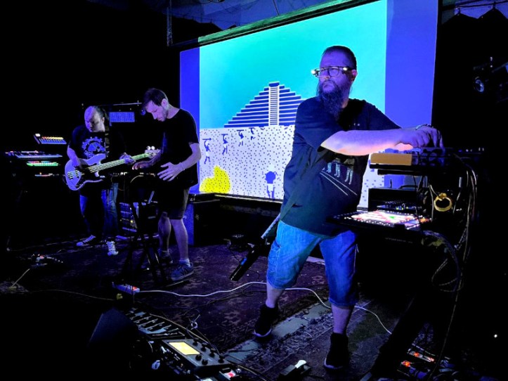 Az Explosive Diode-val már a legelső szárnypróbálgatásaik során sikerült találkoznom évekkel ezelőtt. Ami akkor még közös jammelés volt, az mára profi műsorrá alakult. Három, számomra ismerős arc volt a színpadon. Gelencsér Tamás és Gugyin Andrián az elektronikus kütyükkel varázsolt goa, trance és acid alapokat, erős chiptune és 303 beütésekkel, ahogy azt kell. Miklós Dániel pedig basszusgitáron támogatta őket, néha virtuóz módon szólót is játszva az adott számhoz. Bátor dolog egy alapvetően elektronikus formációtól az élő basszusgitár bevállalása – mondjuk nekem ez már a kezdetektől fogva tetszett, különleges és hipnotikus élményt ad, teljesen elvarázsol. Detox háttérvetítései tették teljessé a koncertélményt. Számomra a csúcspont az Aztec Challenge Commodore 64-es játék zenéjének ediódásítása, köszi, hogy mindig játszátok! 🙂