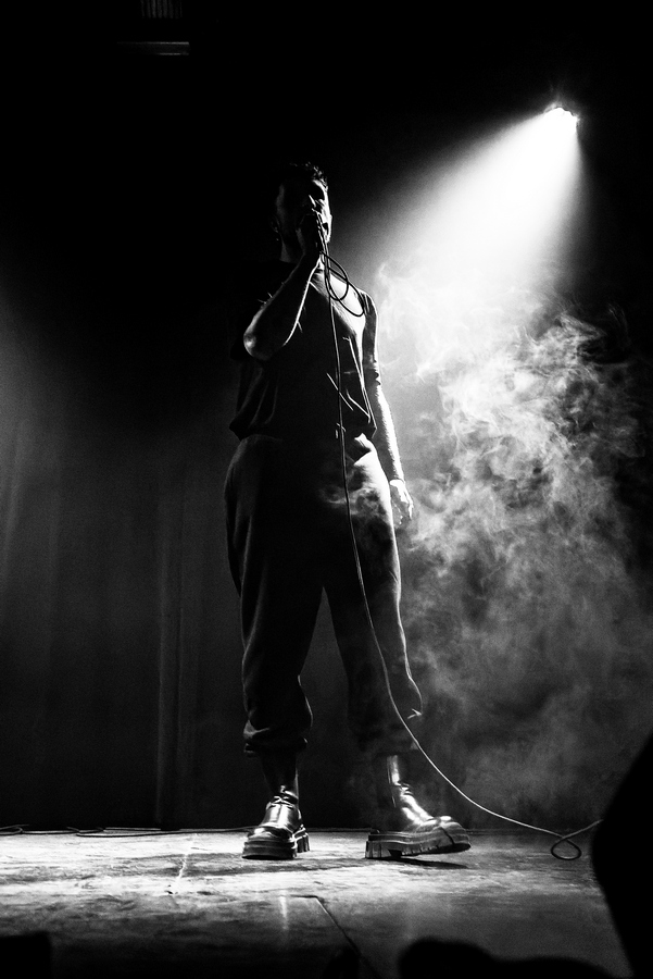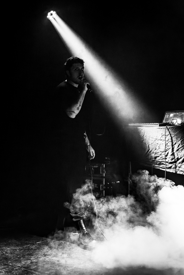Az estét Engel Simon ígéretes sötét elektronikus szólóprojektje, a Separated Lamb nyitotta meg. Idén áprilisban jelent meg az első albuma, a Rare Confession. Elmondása szerint már 2019 óta írogat kis jegyzeteket, eleinte csak saját magának, pár hónapja pedig már a dark szubkultúra számára kreálja az új dalait egy ipad segítségével, amikben leginkább a gyerekkori elfojtásait oldja fel. Az angol szövegű, EBM ütemű számok vallási traumáról, identitásválságról, az Istennel való kapcsolatról, felnövésről szólnak, kifejezetten táncolhatók (különösen tetszett a “Young And Gay“, “Meaningful“), csattanó dobokkal (“The Tunnel“, “I Killed Them“) és itt-ott zörgésekkel (“Sweet Night Time“, “Crawling“). A kb. fél óra gyorsan eltelt, a közönség bőszen tapsolt is, de az énekes viccesen annyit mondott, hogy menjünk cigiszünetre. Gyanítom eljátszotta az összes dalát. Szerintem szuper felvezetés volt az est főszereplője előtt és én még szívesen elhallgattam volna.