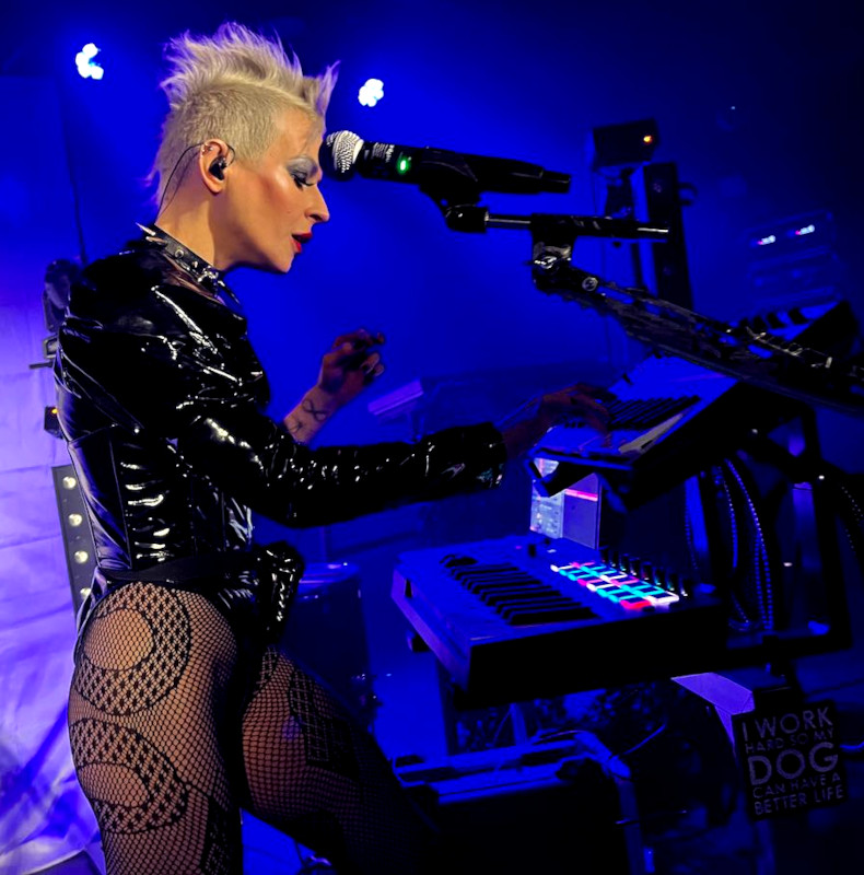 A hölgy nagyon csinosan volt öltözve, fekete, egybe lakkruha volt rajta, ami tangaszerű kialakítása miatt láttatni engedte a fenekét is. Kinézetét még mintás harisnyával, magastalpú cipővel és az elmaradhatatlan tüsis nyakörvvel is feldobta, plusz jópofa volt a láncokkal teletűzdelt mikrofonállványa is. Elmondta, hogy ő lengyel, de már régóta Amerikában él és hiányzott neki Európa, így örül, hogy végre itt is turnézhat. Már az első, „I Am The Fire” és „Vast Spaces” rockosabb dalokkal tűzbe hozta a közönséget, elsősorban a férfiakat, akik bőszen előre is jöttek fotózkodni. Aztán letette a gitárt és a szintihez lépett, aminek az állványára az volt írva, hogy “Azért dolgozok, hogy a kutyámnak jobb élete legyen” és belecsapott a hamar kedvencemmé vált, elektrós hangzású „Dream Not To Dream“-be. Tudni kell róla, hogy heves szószólója a mentális jólét, valamint az emberi és állati jogoknak. Dalaiban gyakran összpontosít a lelki mentális egészségre és az öngyilkosság megelőzésére és az összes bevételének a 15%-át az Öngyilkosságmegelőzési Alapítvány kapja. Szót emel az állatkínzás elleni is, pénzt gyűjtött a világ állatmenhelyei számára, valamint a háború sújtotta Ukrajna lakosságának is.