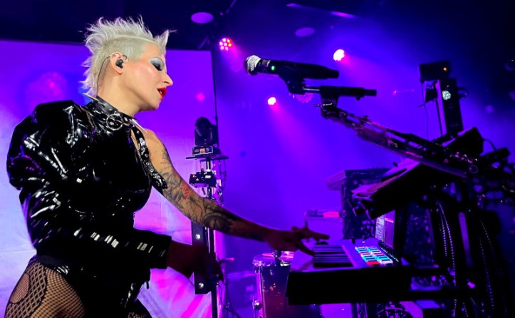 A könyörtelen ritmusú „Denial” után a DM féle „It’s No Good” feldolgozás volt a soros, amit úgy átdolgozott, hogy az elején alig lehetett ráismerni, néhol még a dallamot is direkt máshogyan énekelte, ami teljesen más hangulatot adott az ismert dalnak. Végezetül a „Panic Room” következett, ahol felkapta a fogaskerekekkel díszített mikrofonállványát és az első sorokban állókkal lepacsizott. A dalaiban az indusztriális zenét a darkwave-vel és az elektronikus rockkal keverte, így szőtte őket egyedi hangzású zenei kárpittá. Koncertjei a fékezhetetlen erőről, a vad függetlenségről és a Föld összes élőlénye iránti szeretetről visszhangzik szerte a világon. Egyesítette a béke és az anarchia szimbólumait, amelyek a „lázadó pszichéjét” jelképezik. A lézerekkel és köddel körülvett előadást nagyon izgalmas és hipnotikus volt nézni, az énekesnő szexi, mégis sötét ipari hangulatot hozott a helyszínre.