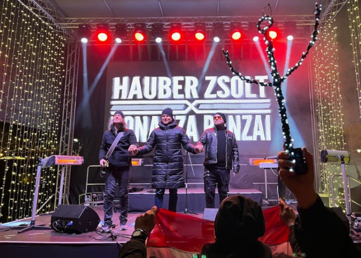 Az intró közben sapka-sálban-nagykabátban megjelentek a fiúk és máris kezdődött a „Jóslat“. Az énekes elmondta, hogy most vannak itt Egerben harmadik alkalommal, majd belecsaptak az „Induljon A Banzáj” és a „Dörömbölnek A Vágyak” dalokba. A „Calypso“-t úgy vezette fel Attila, hogy ez a kedvenc száma, a többi 90 mellett. 😁 A „Kicsi Szív” egy gyorsabb verzióját hallhattuk, majd jött a „Térj vissza“, „Nézz Rám” és az „Újra Élsz“, ahol már ténylegesen mindenki élt, nagy volt a tombolás, a közös éneklés és a hujjogatás. Még egy kézzel készített, karácsonyi cicomában világító Bonanza jel is előkerült. Az „A Megváltó“-t már 1 évvel ezelőtt is eljátszották nekünk, ami olyan gyönyörű szép volt, hogy erre egyszerűen „Nincsen magyarázat“.