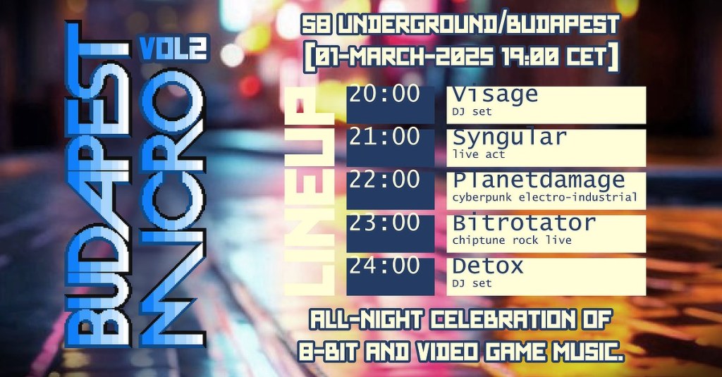A 8 bites és a videojátékzene egész éjszakás ünnepe. All-Night Celebration of 8-bit and Video Game Music.