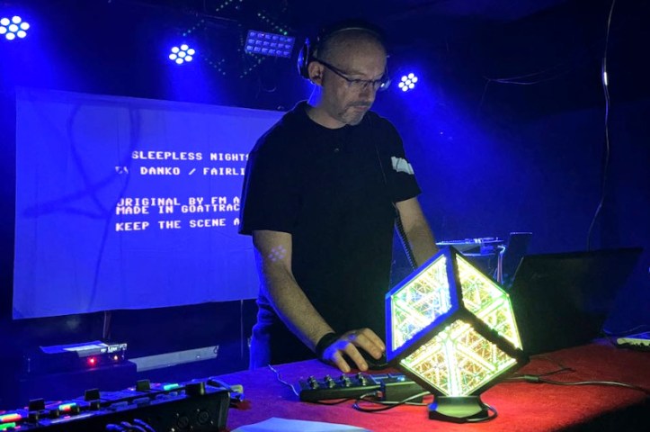 Az első fellépő Vincenzo (aka Strayboom) volt egy újabb DJ szettel, amelyben most kivételesen nem csak saját számok, de a 2024-es év kiemelkedő SID zenészeitől is játszott egy-egy dalt. A 45 perces blokkot az odaillő Commodore 64 vizuál kísérte, amely kellőképpen beindította a bulit a chiptune-t szerető közönség soraiban.